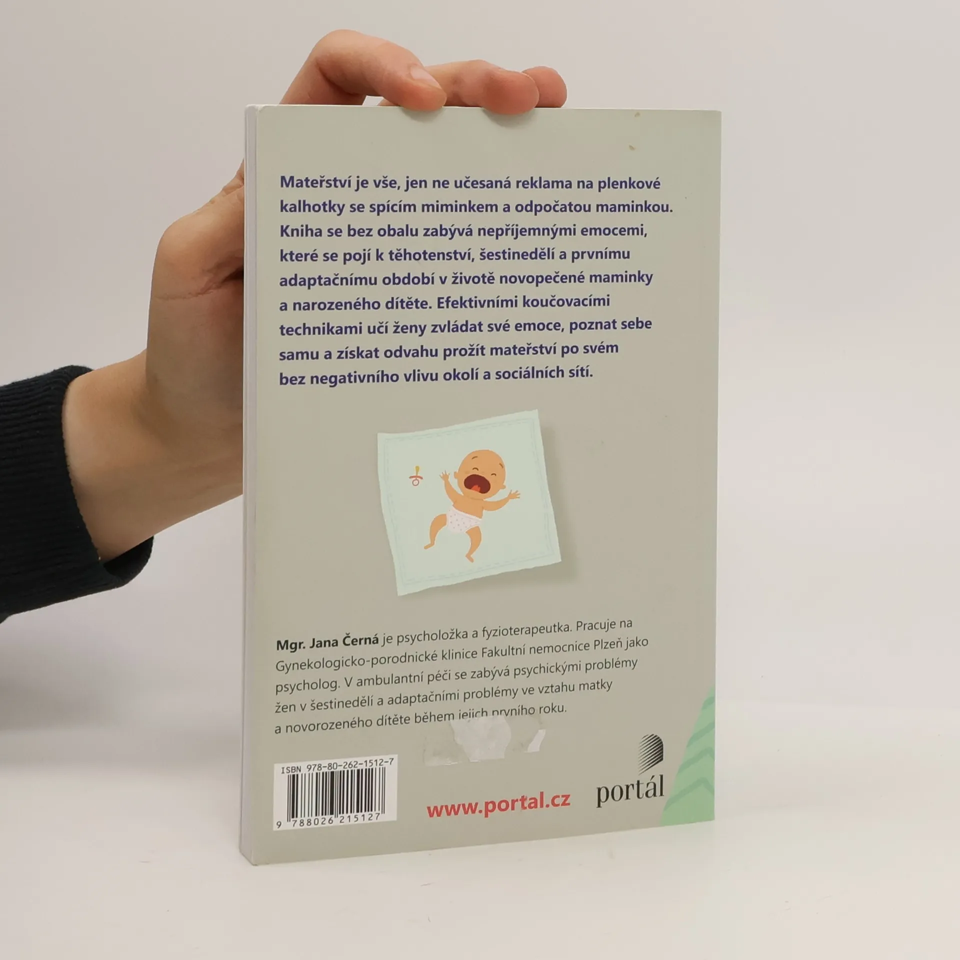 Mateřství je vše, jen ne učesaná reklama na plenkové kalhotky se spícím miminkem a odpočatou maminkou. Kniha se bez obalu zabývá nepříjemnými emocemi, které se pojí k těhotenství, šestinedělí a prvnímu adaptačnímu období v životě novopečené maminky a narozeného dítěte. Efektivními koučovacími technikami učí ženy zvládat své emoce, poznat sebe samu a získat odvahu prožít mateřství po svém bez negativního vlivu okolí a sociálních sítí. Mgr. Jana Černá je psycholožka a fyzioterapeutka. Pracuje na Gynekologicko-porodnické klinice Fakultní nemocnice Plzeň jako psycholog. V ambulantní péči se zabývá psychickými problémy žen v šestinedělí a adaptačními problémy ve vztahu matky a novorozeného dítěte během jejich prvního roku.
