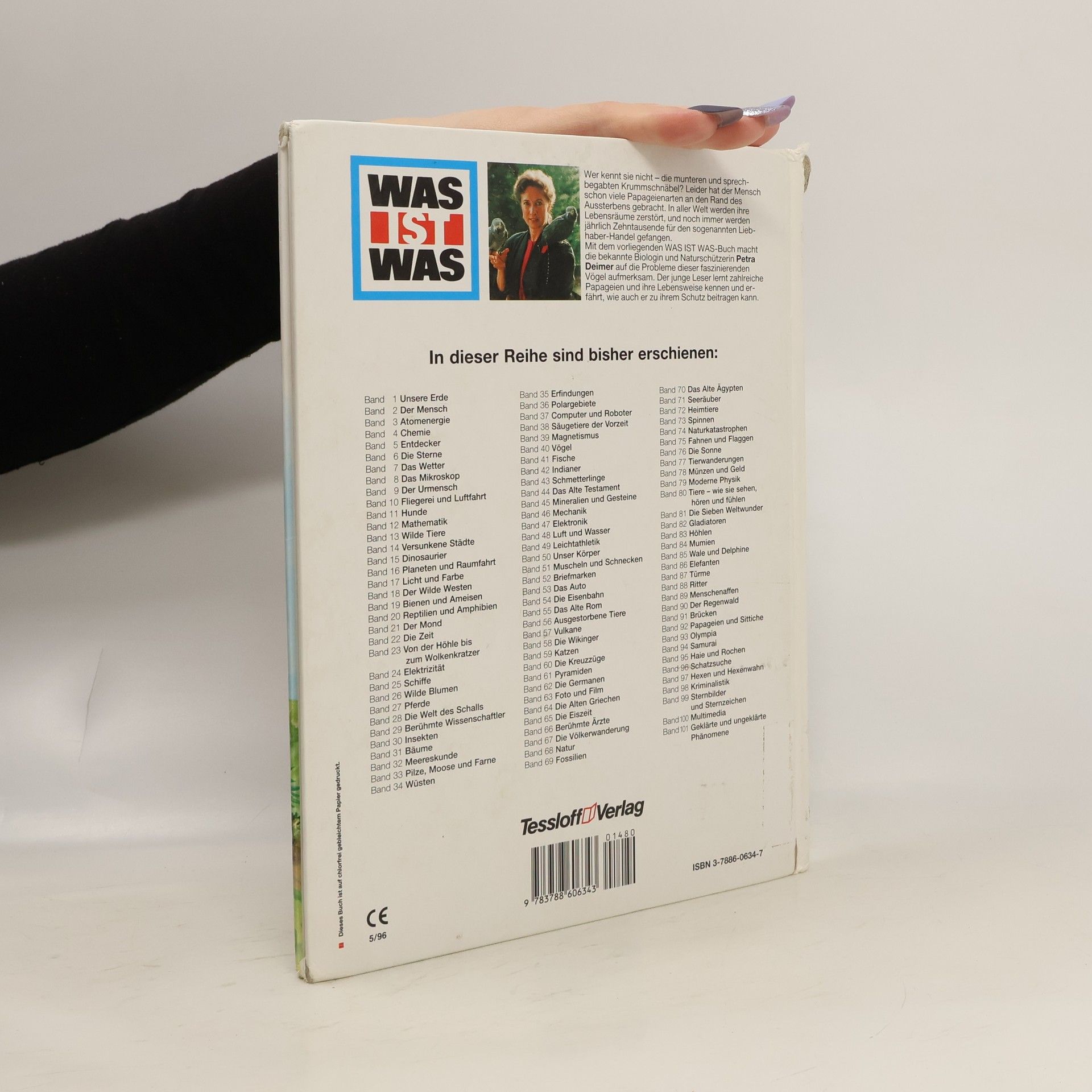 Wer kennt sie nicht - die munteren und sprechbegabten Krummschnäbel? Leider hat der Mensch schon viele Papageienarten an den Rand des Aussterbens gebracht. In aller Welt werden ihre Lebensräume zerstört, und noch immer werden jährlich Zehntausende für den sogenannten Liebhaber-Handel gefangen.Mit diesem WAS IST WAS-Buch macht die bekannte Biologin und Naturschützerin Petra Deimer auf die Probleme dieser faszinierenden Vögel aufmerksam. Der junge Leser lernt zahlreiche Papageien und ihre Lebensweise kennen und erfährt, wie auch er zu ihrem Schutz beitragen kann.