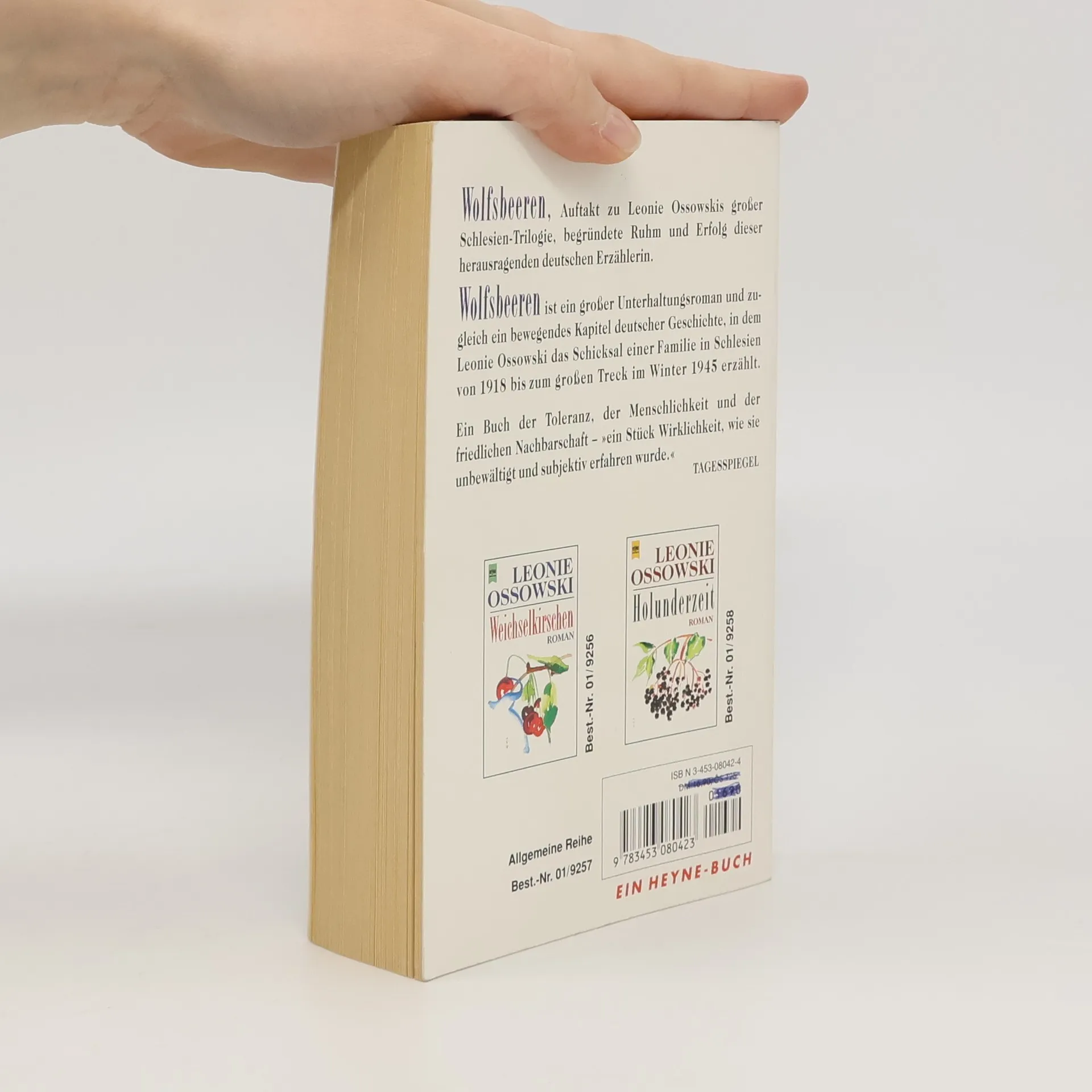 Sophie von Sarbach ist eine ungewöhnliche Frau. Auch als Baronin Zertsch bewahrt sie sich Unabhängigkeit, trifft ehemalige Geliebte, flieht Schlesiens Provinz, wann immer ihr es gefällt. "Wolfsbeeren" weckt Erinnerungen an ein fast vergessenes Land, an Schicksale und Ereignisse zwischen 1918 und 1945. Lebendig und spannend erzählt der Roman Sophies Geschichte, die ihrer Familie und ihres Dorfes. Mit "Wolfsbeeren" geht L. Ossowski den Weg zurück zu den "weichselkirschen", zur Journalistin Anna, die dem Leser hier als Mädchen und junge Frau wiederbegegnet