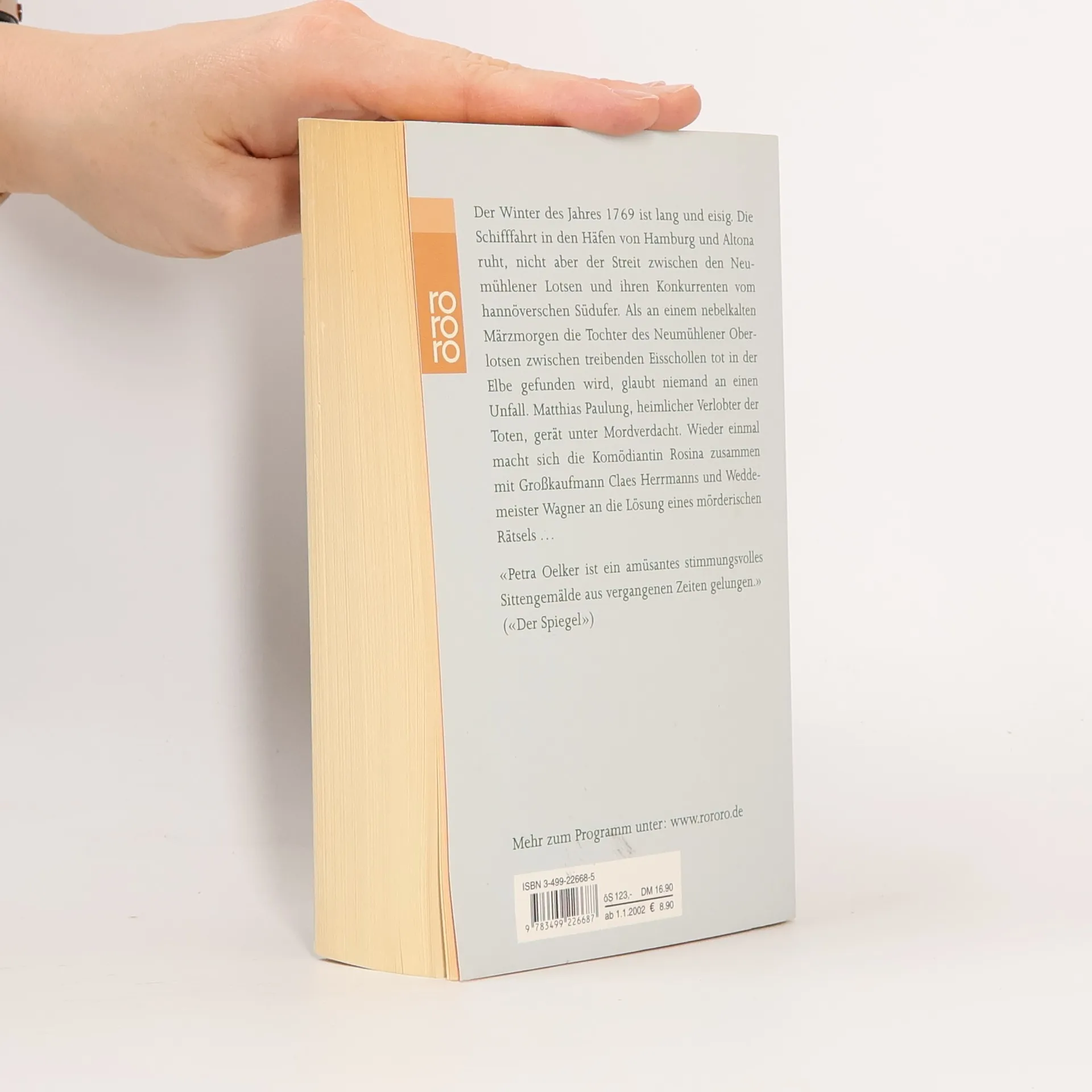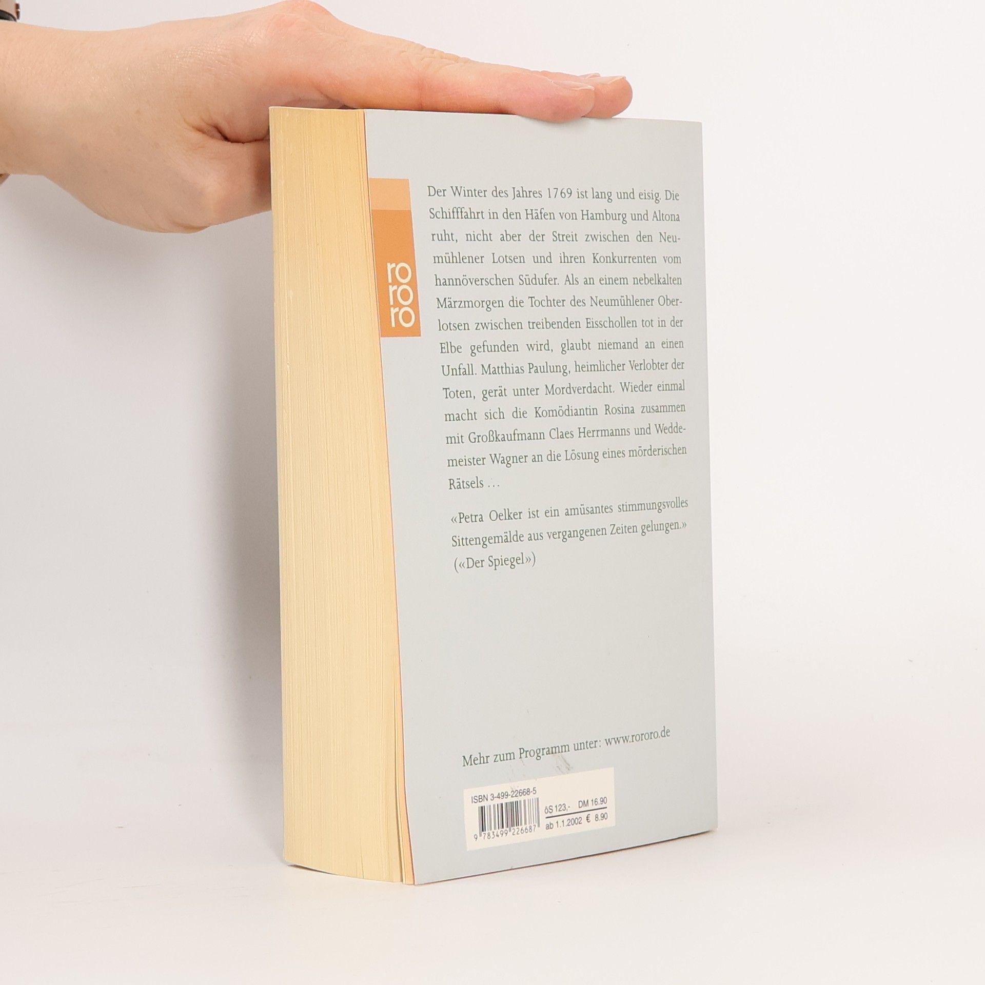 Der Winter des Jahres 1769 ist lang und eisig. Die Schifffahrt in den Häfen von Hamburg und Altona ruht, nicht aber der Streit zwischen den Neumühlener Lotsen und ihren Konkurrenten vom hannöverschen Südufer. Als an einem nebelkalten Märzmorgen die Tochter des Neumühlener Oberlotsen tot in der Elbe gefunden wird, glaubt niemand an einen Unfall. Matthias Paulung, heimlicher Verlobter der Toten, gerät unter Mordverdacht. Wieder einmal macht sich die Komödiantin Rosina zusammen mit Großkaufmann Claes Herrmanns und Weddemeister Wagner an die Lösung eines mörderischen Rätsels ... Rosinas fünfter Fall