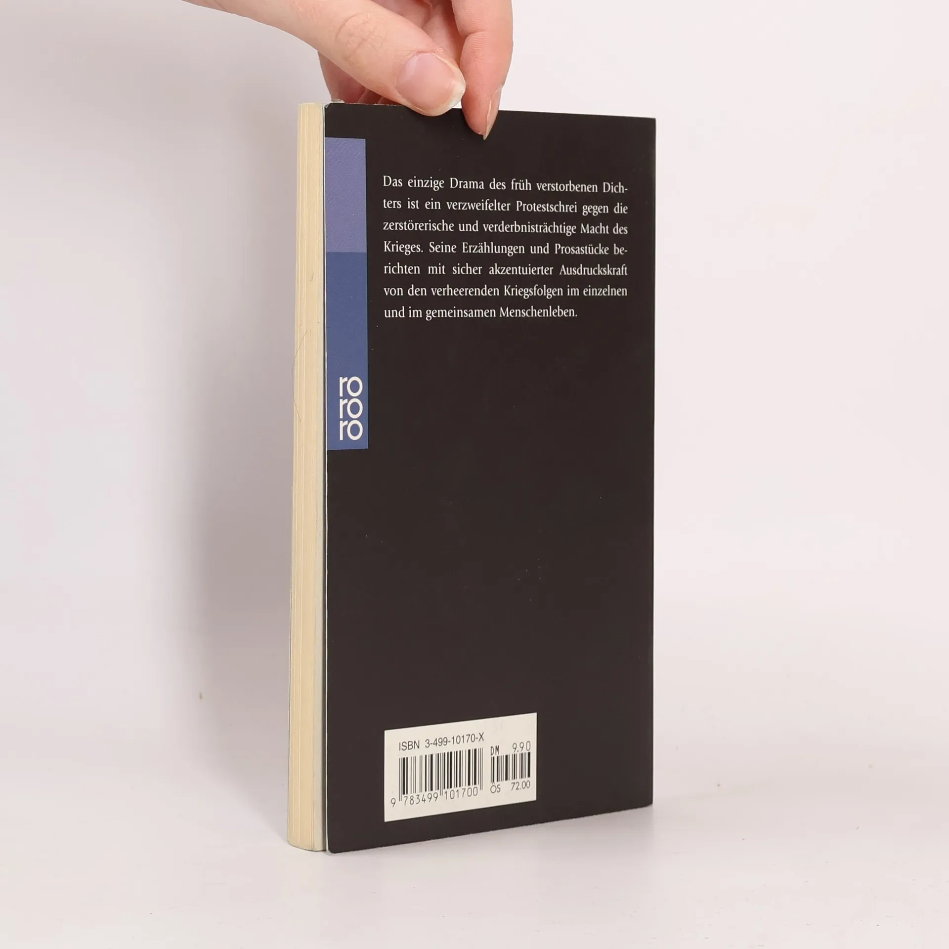 Das einzige Drama des früh verstorbenen Dichters ist ein verzweifelter Protestschrei gegen die zerstörerische und verderbnisträchtige Macht des Krieges. Seine Erzählungen und Prosastücke berichten mit sicher akzentuierter Ausdruckskraft von den verheerenden Kriegsfolgen im einzelnen und im gemeinsamen Menschenleben.