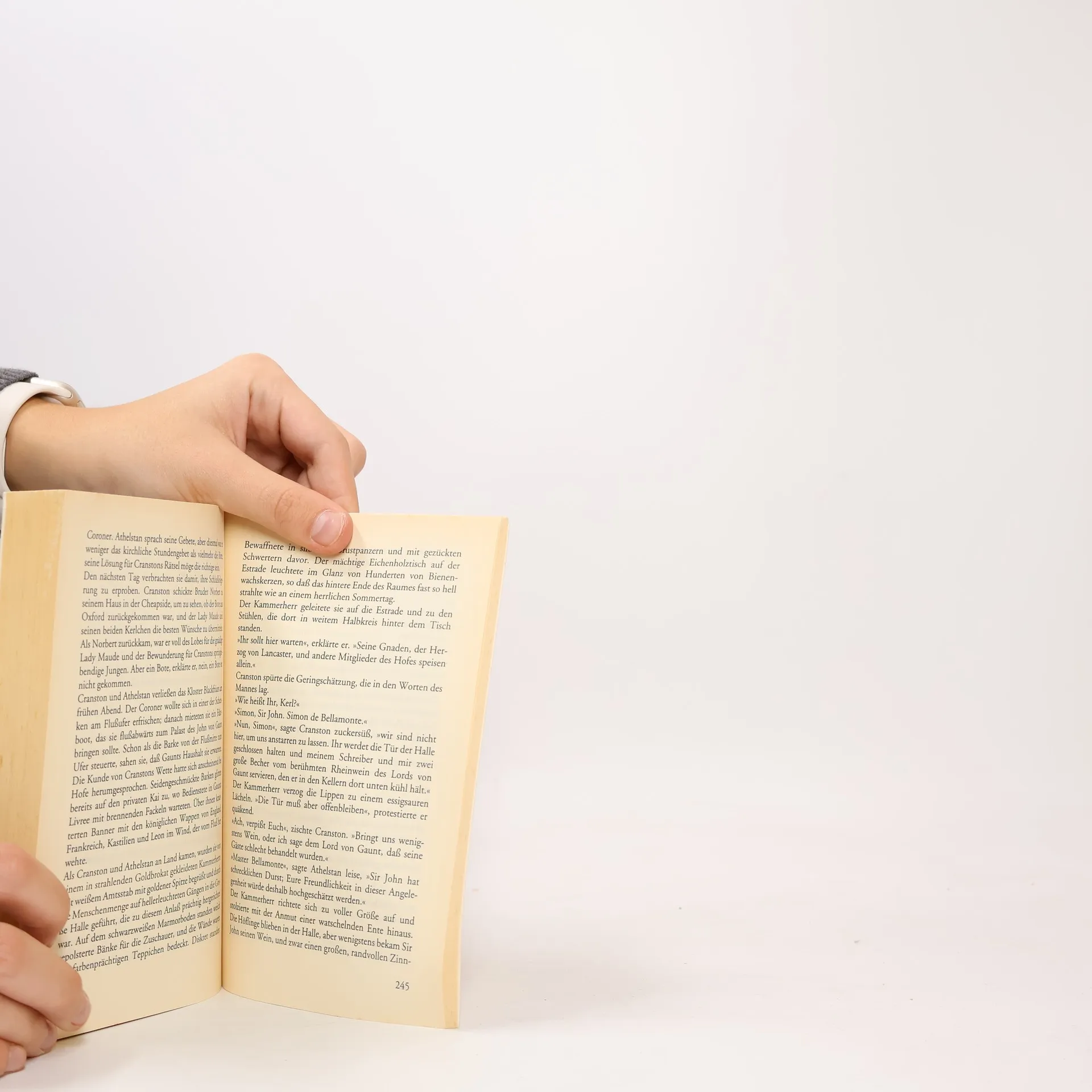 London im Frühsommer 1397. Sir John Cranston ist zu einem großen Bankett am Hofe des Regenten eingeladen. Dort lässt er sich leichtsinnigerweise auf eine Wette mit dem Herzog von Cremona ein, der ihn herausfordert, einen mysteriösen Mordfall binnen zweier Wochen zu lösen: In einem Zimmer des Herzogs wurden Männer tot aufgefunden ...