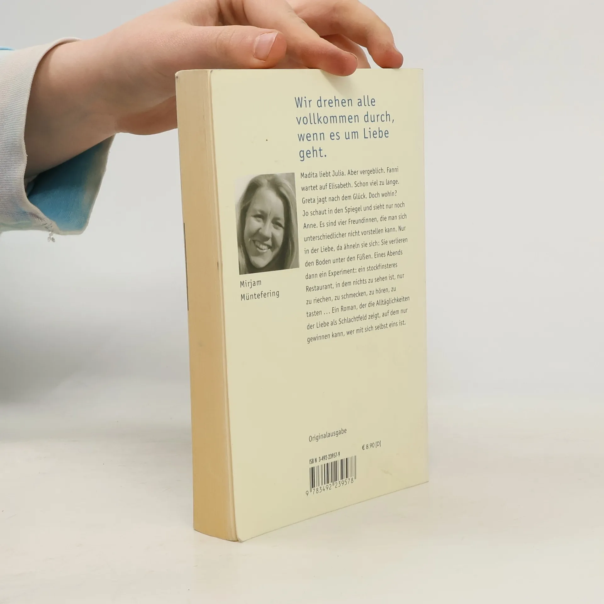 Madita liebt Julia. Aber vergeblich. Fanni wartet auf Elisabeth. Schon viel zu lange. Greta jagt nach dem Glück. Doch wohin? Jo schaut in den Spiegel und sieht nur noch Anne. Es sind vier Freundinnen, die man sich unterschiedlicher nicht vorstellen kann. Nur in der Liebe, da ähneln sie sich: Sie verlieren den Boden unter den Füßen. Eines Abends dann ein Experiment: ein stockfinsteres Restaurant, in dem nichts zu sehen ist, nur zu riechen, zu schmecken, zu hören, zu tasten. Ein Roman, der die Alltäglichkeiten der Liebe als Schlachtfeld zeigt, auf dem nur gewinnen kann, wer mit sich selbst eins ist.