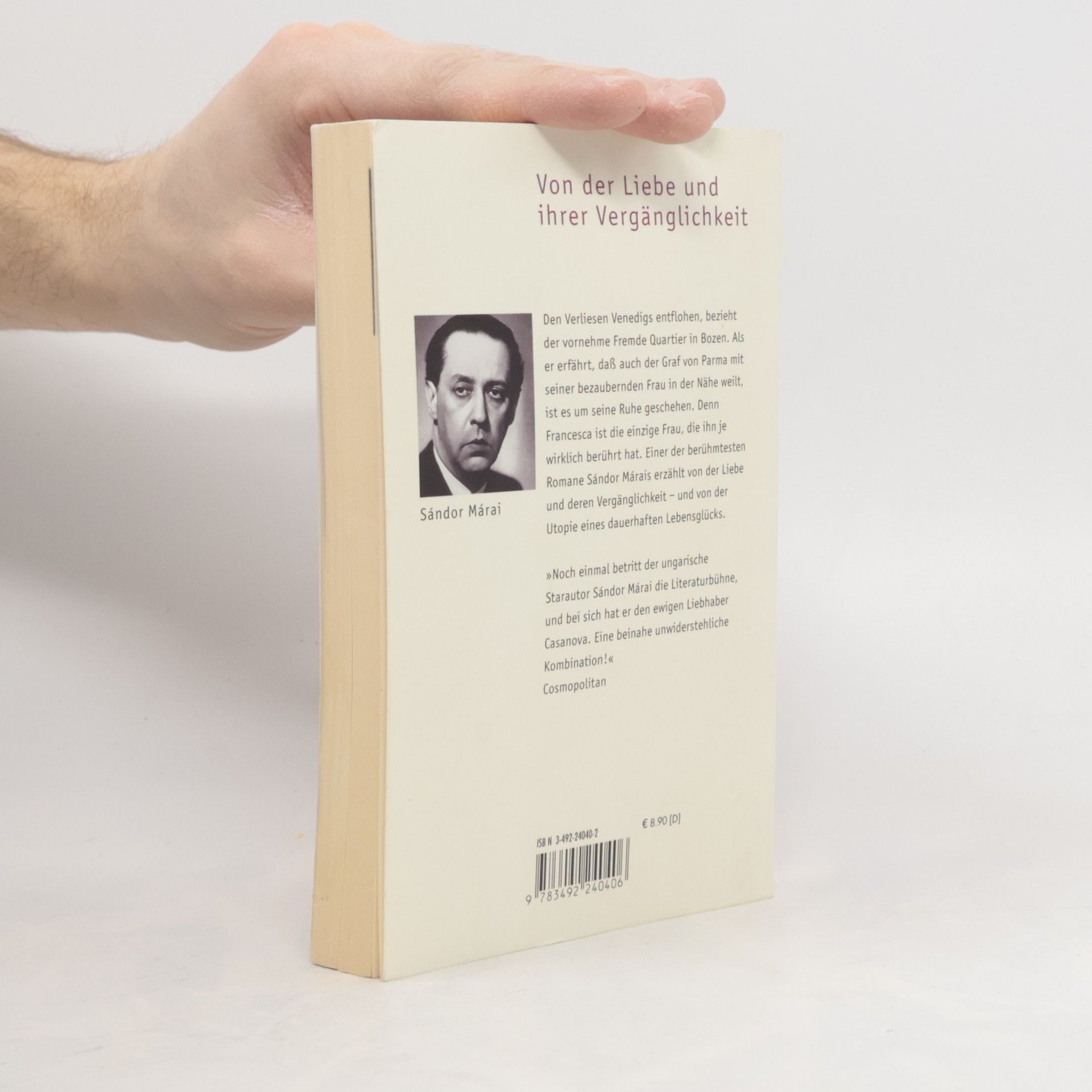 Den Verliesen Venedigs entflohen, bezieht der vornehme Fremde Quartier in Bozen. Als er erfährt, dass auch der Graf von Parma mit seiner bezaubernden Frau in der Nähe weilt, ist es um seine Ruhe geschehen. Denn Francesca ist die einzige Frau, die ihn je wirklich berührt hat. Einer der berühmtesten Romane Sándor Márais erzählt von der Liebe und deren Vergänglichkeit – und von der Utopie eines dauerhaften Lebensglücks.