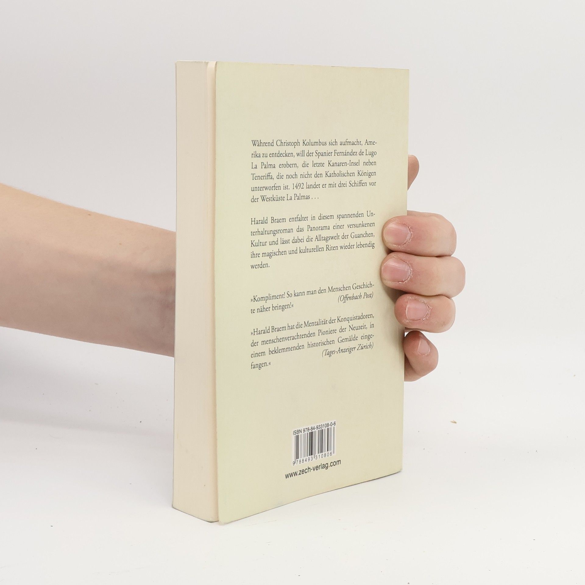 1492, im gleichen Jahr, in dem Kolumbus nach Amerika aufbricht, erobert der Spanier Alonso de Lugo die Kanareninsel La Palma. Vor der Kulisse eines unserer beliebtesten Ferienparadiese entwirft Harald Braem das Panorama einer versunkenen Kultur. Der erfolgreiche Autor schildert in diesem spannenden Unterhaltungsroman den Freiheitskampf der Ureinwohner La Palmas unter ihrem heldenhaften König Tanausú. Braem entfaltet in seinem Roman das Panorama einer versunkenen Kultur, die dem europäischen Eroberungsdrang zum Opfer fiel. Voller Liebe zu den Kanaren lässt er die Alltagswelt der Guanchen, ihre magischen und kulturellen Riten wieder lebendig werden, schildert er soziale und politische Verhältnisse – und eine Liebesgeschichte. Dem gegenüber steht die menschenverachtende Mission der katholischen Kirche, verkörpert in der Figur des Pater Innozenz, und das brutale Vorgehen der Konquistadoren. „Harald Braem hat die Mentalität der Konquistadoren, der menschenverachtenden Pioniere der Neuzeit, in einem beklemmenden historischen Gemälde eingefangen." (Tages-Anzeiger Zürich) „Kompliment! So kann man den Menschen Geschichte näher bringen." (Offenbach Post)