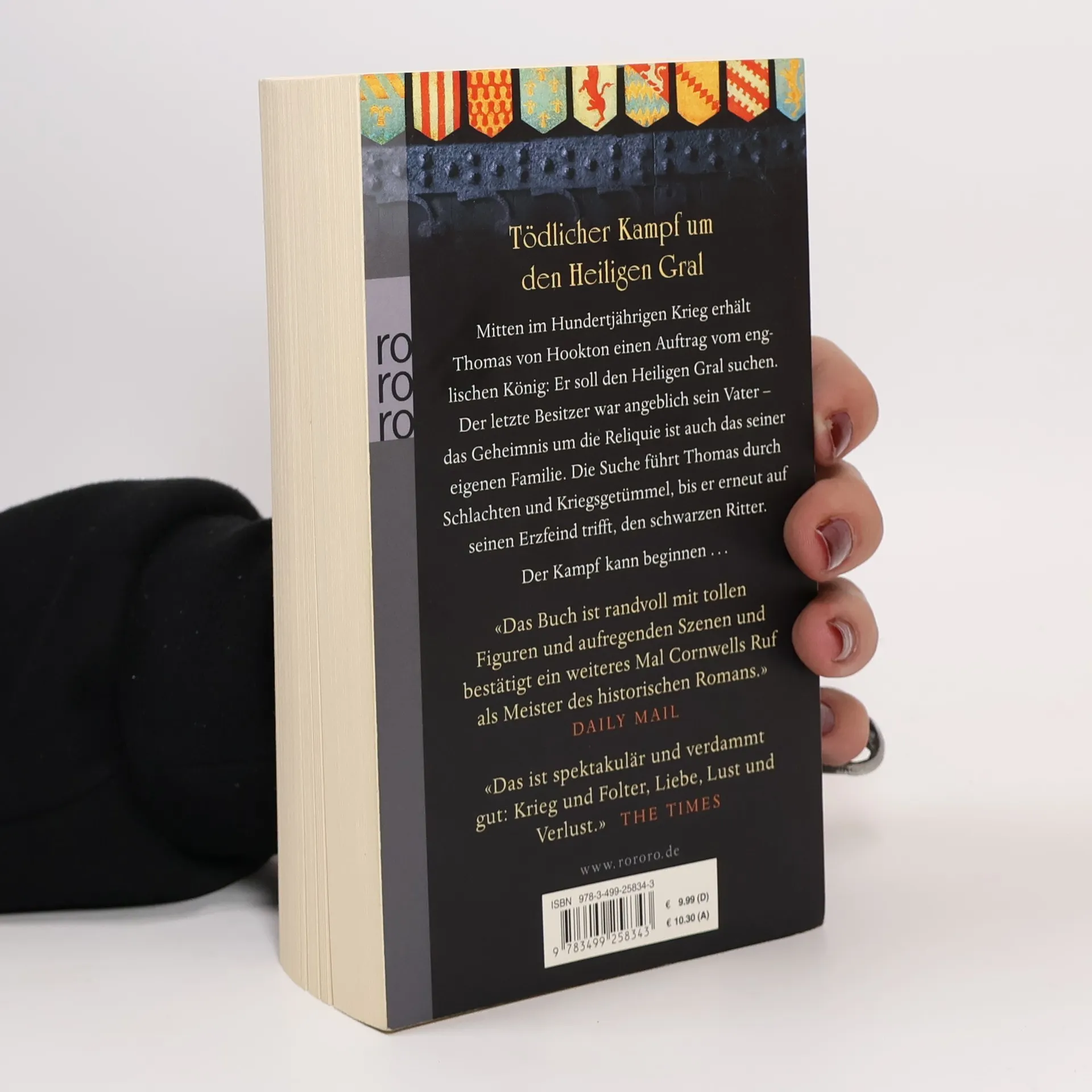 Tödlicher Kampf um den Heiligen Gral Mitten im Hundertjährigen Krieg erhält Thomas von Hookton einen Auftrag vom englischen König: Er soll den Heiligen Gral suchen. Der letzte Besitzer war angeblich sein Vater – das Geheimnis um die Reliquie ist auch das seiner eigenen Familie. Die Suche führt Thomas durch Schlachten und Kriegsgetümmel, bis er erneut auf seinen Erzfeind trifft, den schwarzen Ritter. Der Kampf kann beginnen. Die Bücher vom Heiligen Gral, Band 2