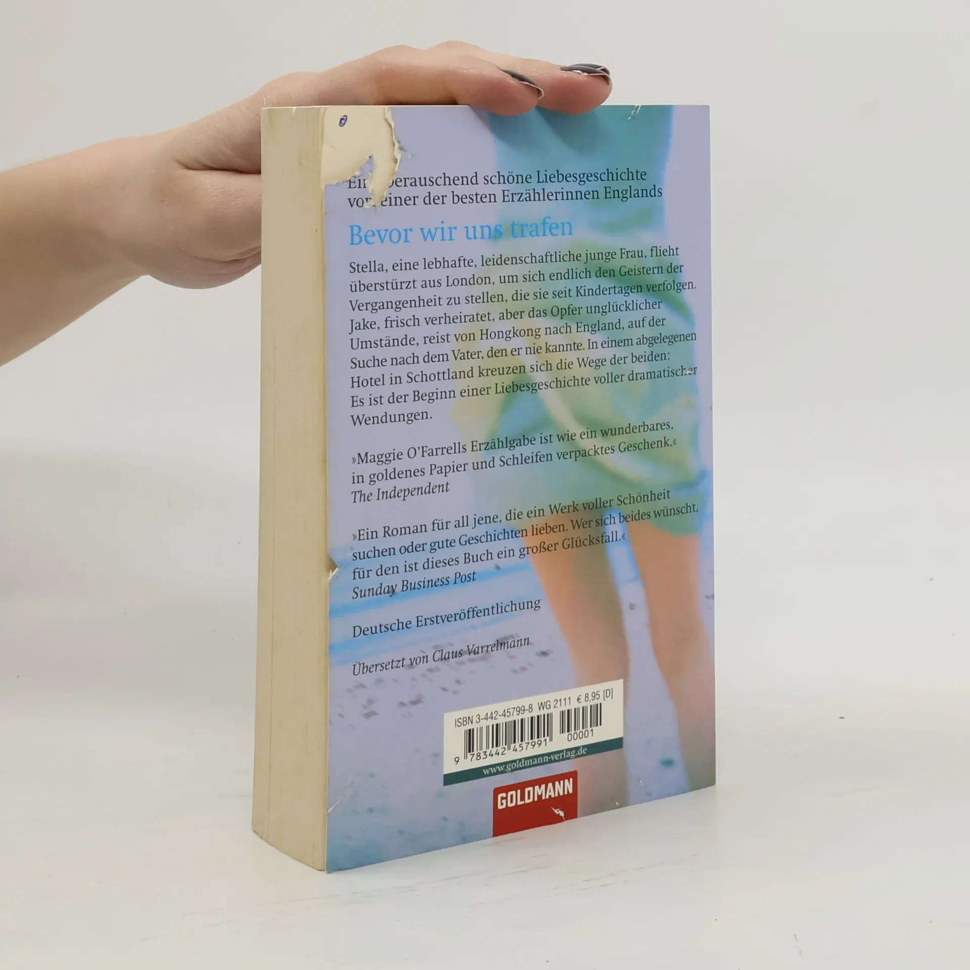 Stella, eine lebhafte, leidenschaftliche junge Frau, flieht überstürzt aus London, um sich endlich den Geistern der Vergangenheit zu stellen, die sie seit Kindertagen verfolgen. Jake, frisch verheiratet, aber das Opfer unglücklicher Umstände, reist von Hongkong nach England, auf der Suche nach dem Vater, den er nie kannte. In einem abgelegenen Hotel in Schottland kreuzen sich die Wege der beiden: Es ist der Beginn einer Liebesgeschichte voller dramatischer Wendungen. "O'Farrells Stil und ihr erzählerisches Feuer sind einzigartig, ihre Figuren sind auf das Sorgfältigste gezeichnet und so von beeindruckender Komplexität und Tiefe.„ Sunday Business Post “Maggie O'Farrell hat ein magisches Talent für Liebesszenen, die unter die Haut gehen.„ Independent “Maggie O'Farrells größte Stärke ist ihre Gabe, psychologische Wahrheiten in Momentaufnahmen sichtbar zu machen. Mit einem Satz trifft sie genau ins Schwarze, und der Leser spürt sofort, wie richtig und lebensnah ihre Einsichten sind." Sunday Herald