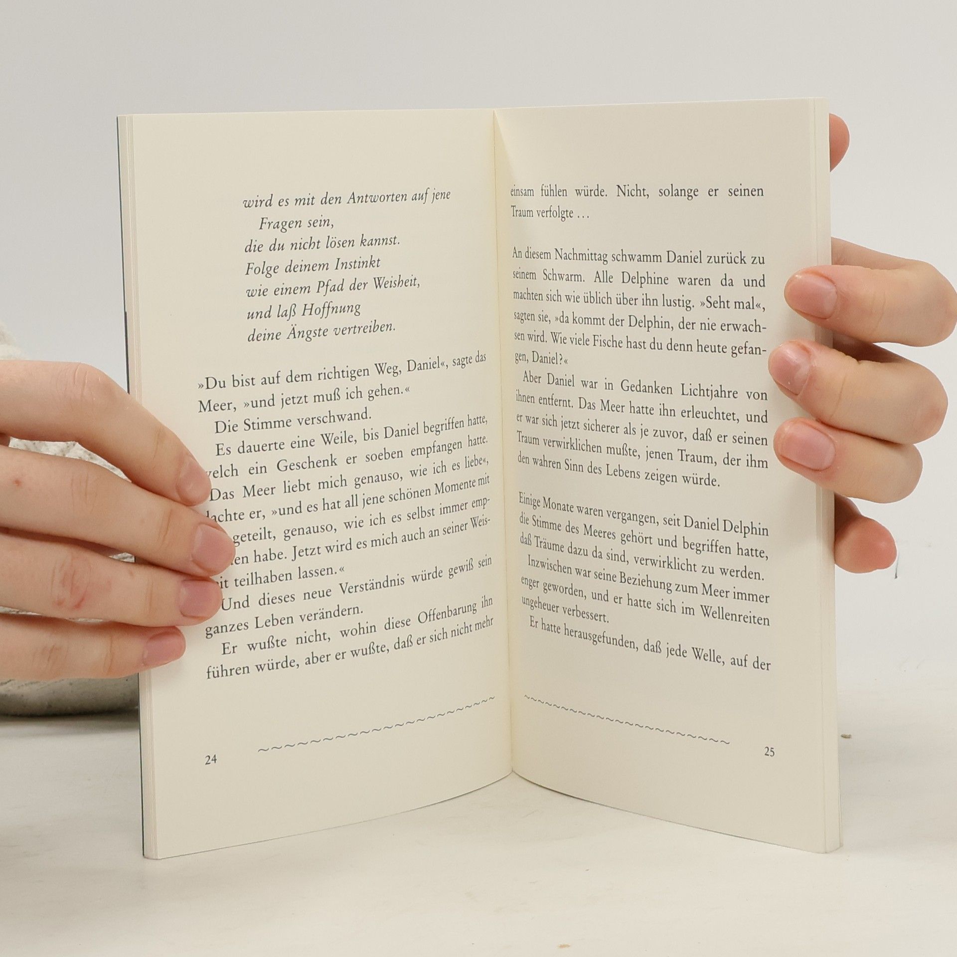 Hör nie auf, an deinen Traum zu glauben – auch wenn das Leben manchmal hart mit dir umspringt. Wie Daniel Alexander, der junge Delphin, der das sichere Riff verläßt und davonschwimmt, seiner Bestimmung entgegen … 'Eine wunderbare Geschichte über unseren Mut, unsere Ängste und unsere persönlichen Grenzen.' Handelsblatt