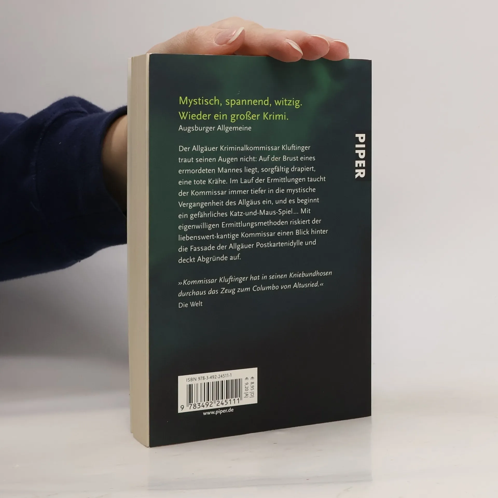 Der Allgäuer Kriminalkommissar Kluftinger traut seinen Augen nicht: Auf der Brust eines toten Mannes in einem Wald bei Kempten liegt, sorgfältig drapiert, eine tote Krähe. Im Lauf der Ermittlungen taucht der Kommissar immer tiefer in die mystische Vergangenheit des Allgäus ein, und es beginnt ein Katz-und-Maus-Spiel mit dem Mörder, bei dem die Zeit gegen ihn arbeitet. Denn alle Zeichen sprechen dafür, dass das Morden weitergeht … Mit eigenwilligen Ermittlungsmethoden riskiert der liebenswert-kantige Kommissar einen Blick hinter die Fassade der Allgäuer Postkartenidylle und deckt Abgründe auf.