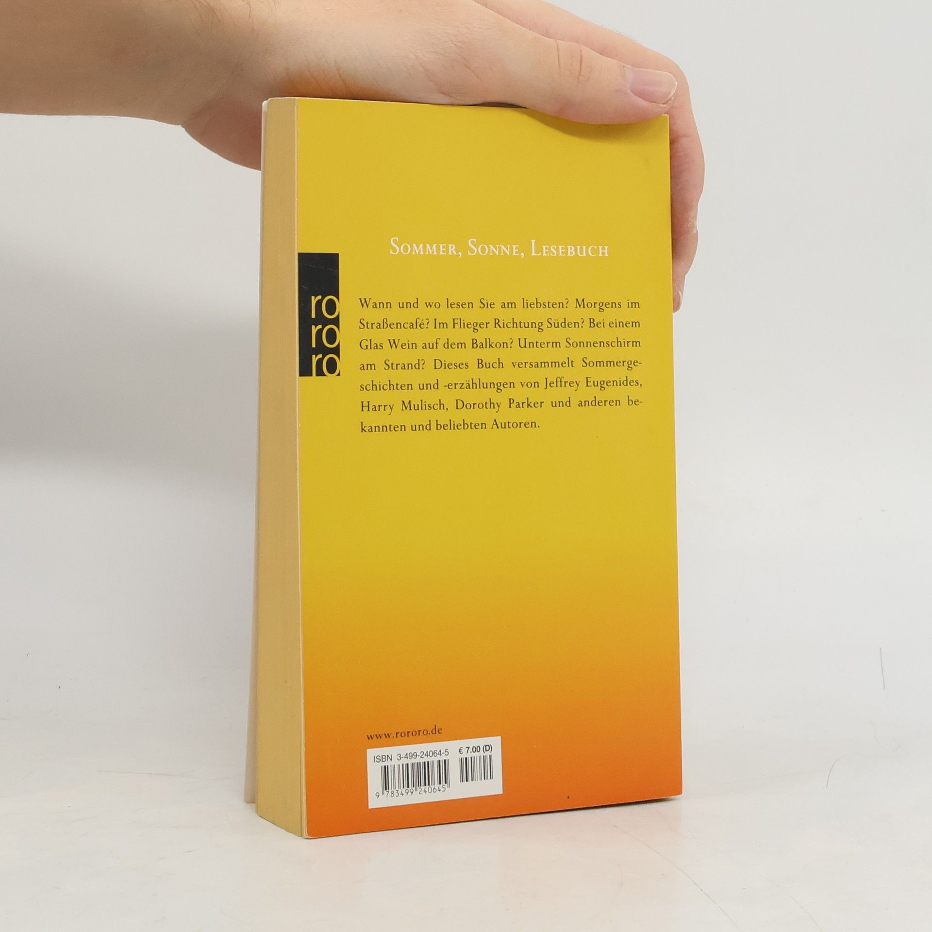 Sommer, Sonne, Lesebuch Wann und wo lesen Sie am liebsten? Morgens im Straßencafé? Im Flieger Richtung Süden? Bei einem Glas Wein auf dem Balkon? Unterm Sonnenschirm am Strand? Dieses Buch versammelt Sommergeschichten und Erzählungen von Jeffrey Eugenides, Harry Mulisch, Dorothy Parker und anderen bekannten und beliebten Autoren.