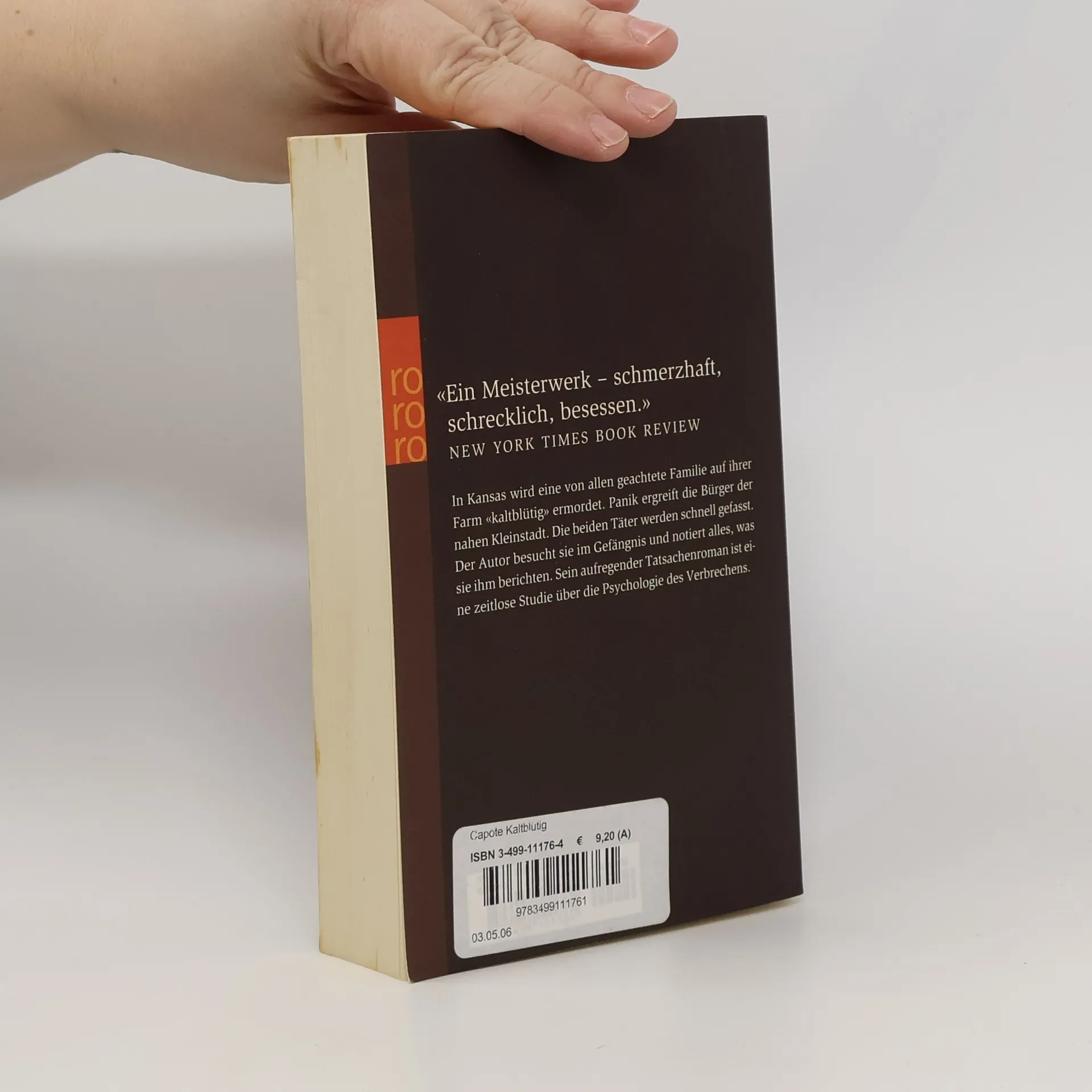 „Ein Meisterwerk – schmerzhaft, schrecklich, besessen.“ (New York Times Book Review) In Kansas wird eine von allen geachtete Familie auf ihrer Farm “kaltblütig” ermordet. Panik ergreift die Bürger der nahen Kleinstadt. Die beiden Täter werden schnell gefasst. Der autor besucht sie im Gefängnis und notiert alles, was sie ihm berichten. Sein aufregender Tatsachenroman ist eine zeitlose Studie über die Psychologie des Verbrechens.