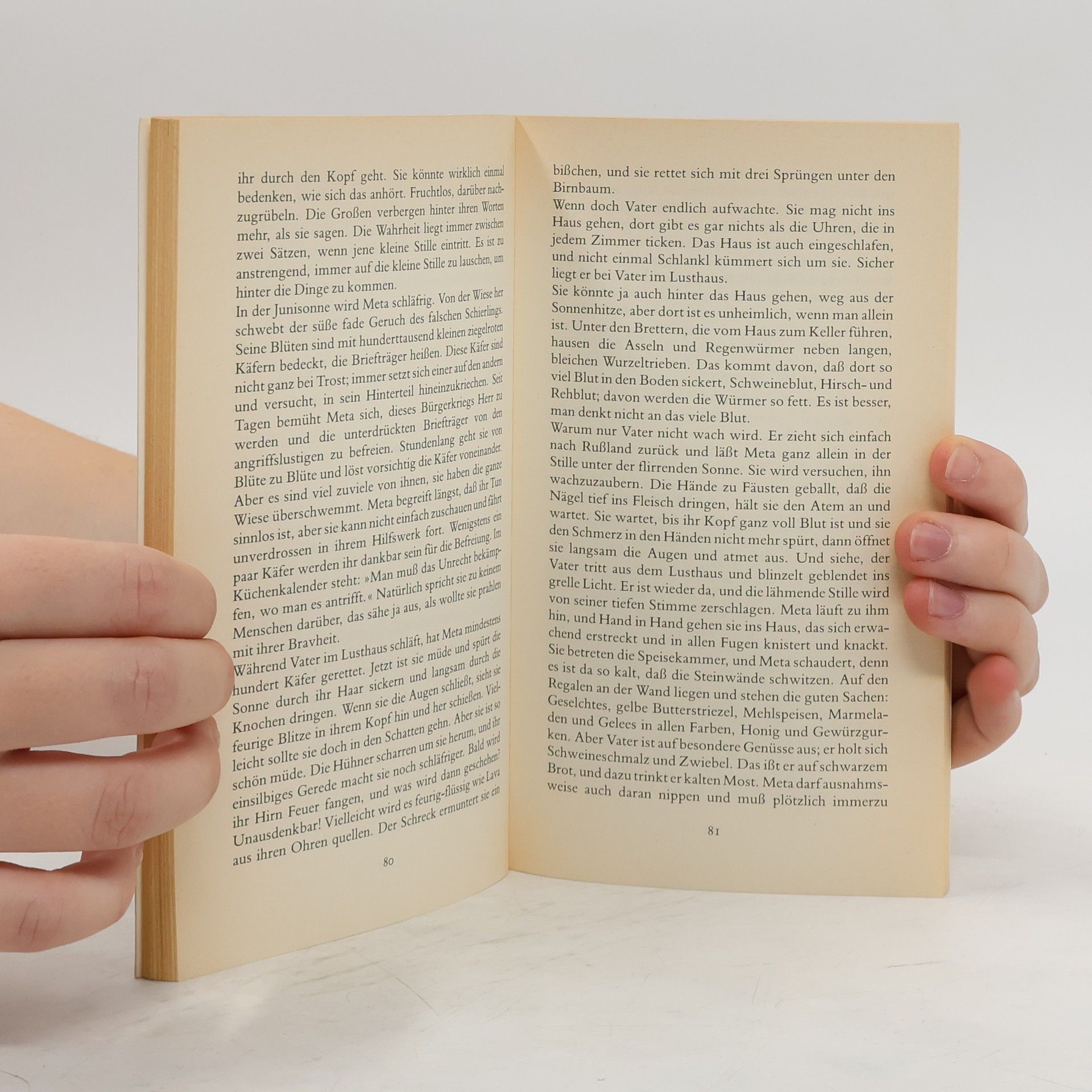 Einfühlsam und sehr genau beobachtend, beschreibt Marlen Haushofer die Welt aus der Sicht der kleinen Meta, die in einem Forsthaus aufwächst. Mit allen Sinnen nimmt diese ihre idyllische Umgebung in sich auf und versucht, Ordnung in das Durcheinander der Eindrücke und Ereignisse zu bringen.