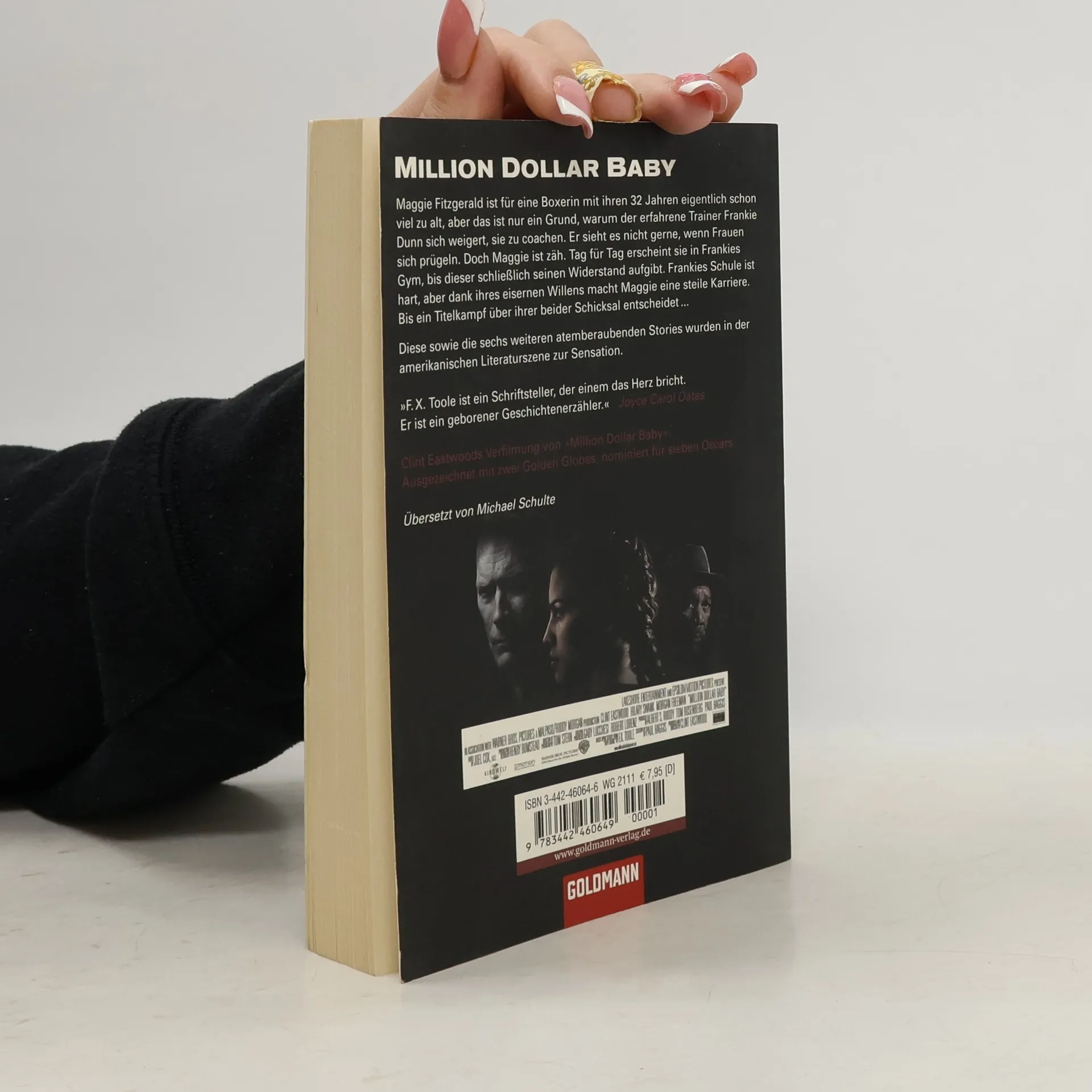 Maggie Fitzgerald ist mit ihren 32 Jahren eigentlich schon viel zu alt, um professionell mit dem Boxen anzufangen, aber das ist nur ein Grund, warum der alte, erfahrene Trainer Frankie Dunn sich weigert, sie zu coachen. Frauenboxen ist für ihn eine Freakshow - und überhaupt sieht er es nicht gerne, wenn 'Mädchen' sich prügeln. Doch Maggie ist zäh. Tag für Tag erscheint sie in Frankies Gym, bis dieser schließlich seinen Widerstand aufgibt. Frankies Schule ist hart, aber dank ihres Talents und eines eisernen Willens macht Maggie eine steile Karriere. Beim alles entscheidenden Titelkampf beschließt sich Maggies Schicksal - jedoch grausam anders als erwartet. Diese sowie die sechs weiteren atemberaubenden Stories rund um das Thema Boxen wurden in der amerikanischen Literaturszene zur Sensation. Authentisch und mit großer Liebe zum Detail bevölkert Toole seine Welt mit unvergeßlichen Charakteren, zu denen beispielsweise Seńora Cabrera zählt, die im Acapulco Café fettfrei Bohnen für den lokalen Boxhelden brät, oder der anonyme Museumswärter mit einer Schwäche für Michelangelo. F. X. Toole erzählt von Athleten, Trainern und Promotern, allesamt Abhängige in einem brutalen Geschäft, wo Sieg und Niederlage bitter bezahlt werden. „F. X. Toole ist ein Schriftsteller, der einem das Herz bricht. Er ist ein geborener Geschichtenerzähler.“ Joyce Carol Oates „Tooles Sprache ist hart, klar und kraftvoll. - Ein beeindruckendes Debüt!“ The New York Times Book Review „Grandios!“ The New Yorker