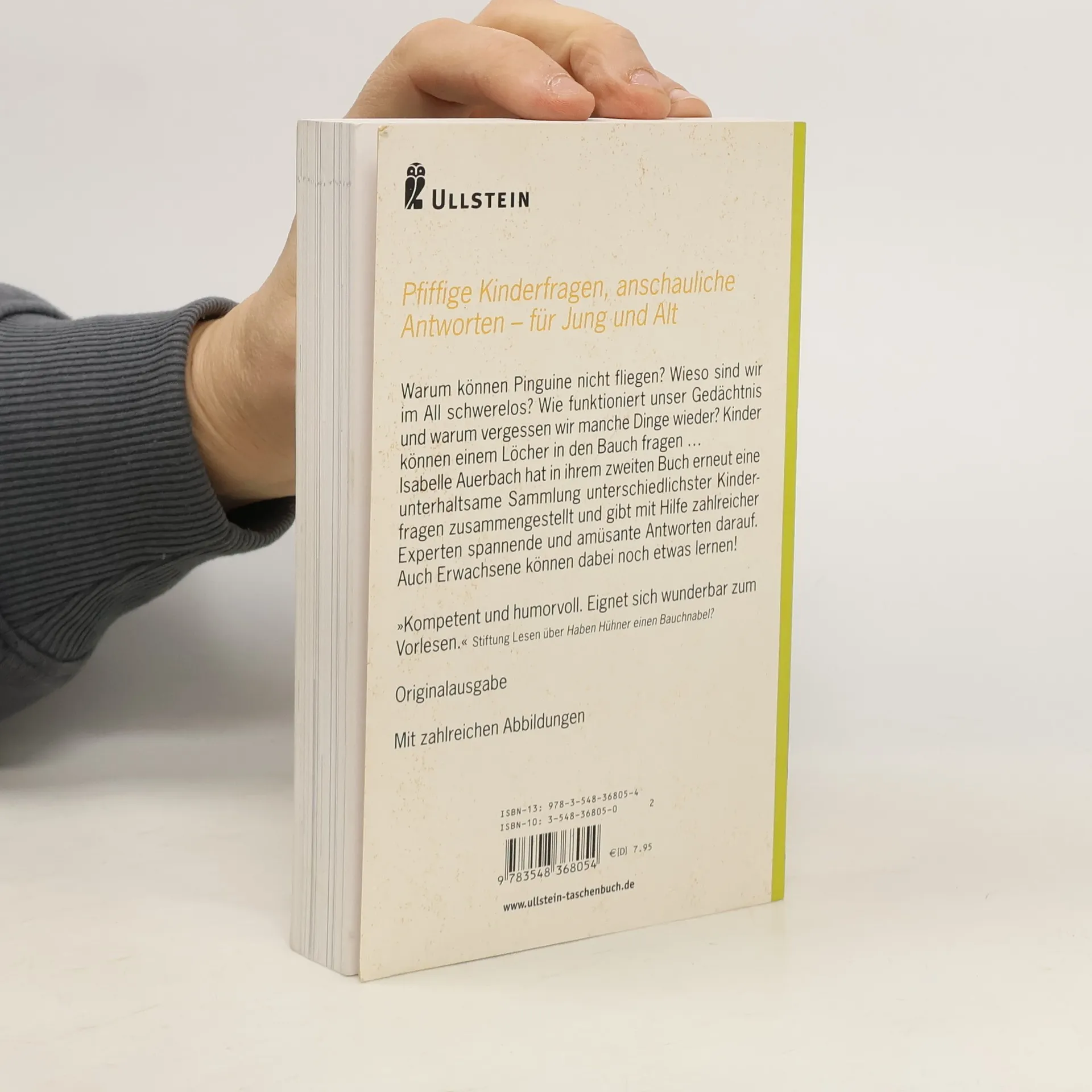 Warum können Pinguine nicht fliegen? Ist das Faultier wirklich faul? Wieso gibt es im Weltraum keine Schwerkraft? Kinder können einem Löcher in den Bauch fragen? Isabelle Auerbach hat in ihrem zweiten Buch erneut eine unterhaltsame Sammlung unterschiedlichster Kinderfragen zusammengestellt und gibt mit Hilfe zahlreicher Experten amüsante und lehrreiche Antworten darauf. Auch Erwachsene können dabei noch etwas lernen!