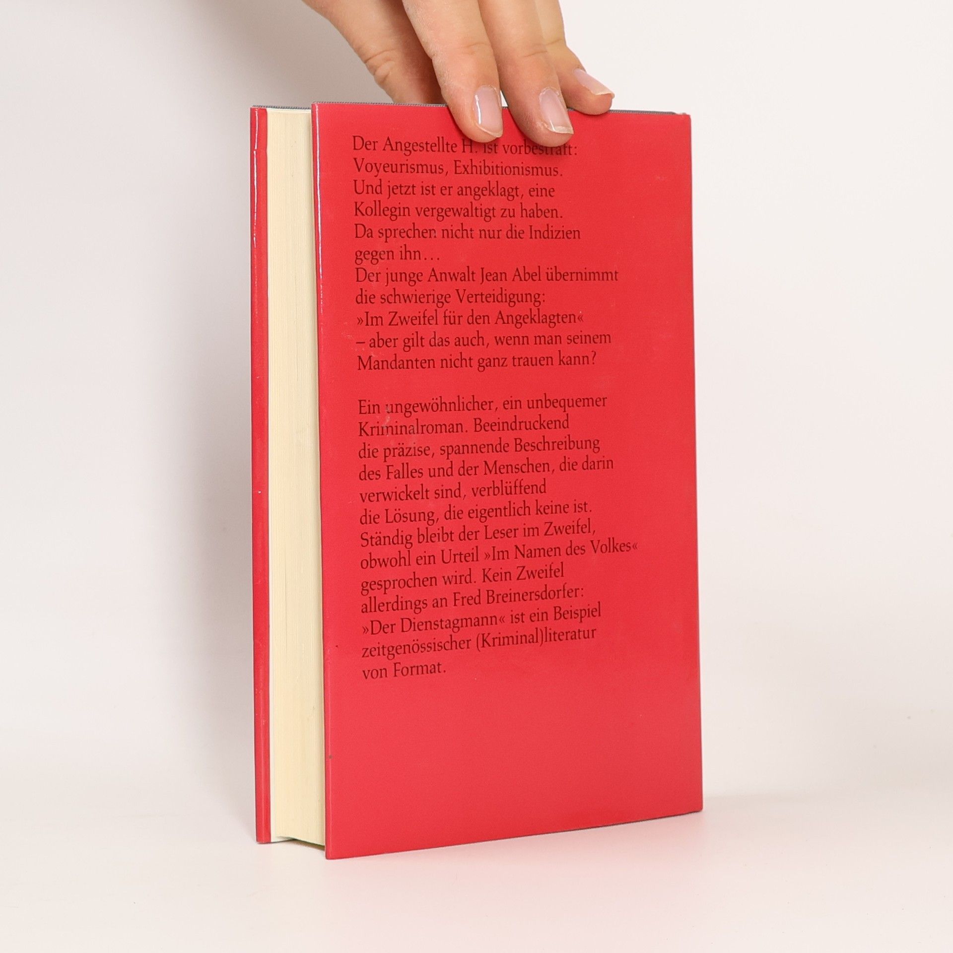 Melly Moslech war auf einem Betriebsfest und hat mit ihren Kollegen ausgiebig Fasching gefeiert. Alle haben getrunken, und sogar der schüchterne Hiltsch fühlt sich durch Musik und Sekt so angeregt, dass er Melly zum Tanz auffordert. Als er später versucht sie zu küssen, gibt sie ihm eine schallende Ohrfeige und verlässt verärgert das Fest. Um den Nachhauseweg abzukürzen, geht sie durch den Englischen Garten. Dort wird sie von einem Unbekannten überfallen und brutal vergewaltigt. Melly hat den Täter nicht erkannt, aber sie ahnt, wer es ist. Die Polizei nimmt Hiltsch vorläufig fest. Abel wird ihn verteidigen und kämpft zunächst erfolgreich für die Freilassung seines Mandanten. Doch da erinnert sich der Kripobeamte Holz an einige unaufgeklärte Fälle und an den berüchtigten Dienstagmann, einen Serientäter, der nur an Dienstagen Frauen überfällt und misshandelt. Hat der Dienstagmann auch Melly überfallen und missbraucht? Oder hat Abels Klient etwas mit der Vergewaltigungsserie zu tun? Fred Breinersdorfer ist einer der renommiertesten deutschen Krimi- und Drehbuchautoren. Der Berliner Anwalt schuf die Abel-Reihe im ZDF, basierend auf seinen Romanen, die bei Pendragon neu herausgegeben werden. Sie sind Klassiker des modernen deutschen Krimis. Für die ARD schrieb er 15 Tatort-Drehbücher. In seinen Fernsehfilmen, vom 'Hammermörder' (ZDF) bis 'Die Hoffnung stirbt zuletzt' (ARD) verbindet er Hochspannung mit ebenso sensiblen wie präzisen Portraits von Tätern und Opfern. Breinersdorfer erhielt zahlreiche Auszeichnungen, darunter den Adolf-Grimme-Preis mit Gold und den Deutschen Filmpreis. Mit dem Kinofilm 'Sophie Scholl, die letzten Tage' gelang ihm ein Welterfolg und die Nominierung zum Oscar ® 2006 in der Kategorie 'Best Foreign Language Film'.