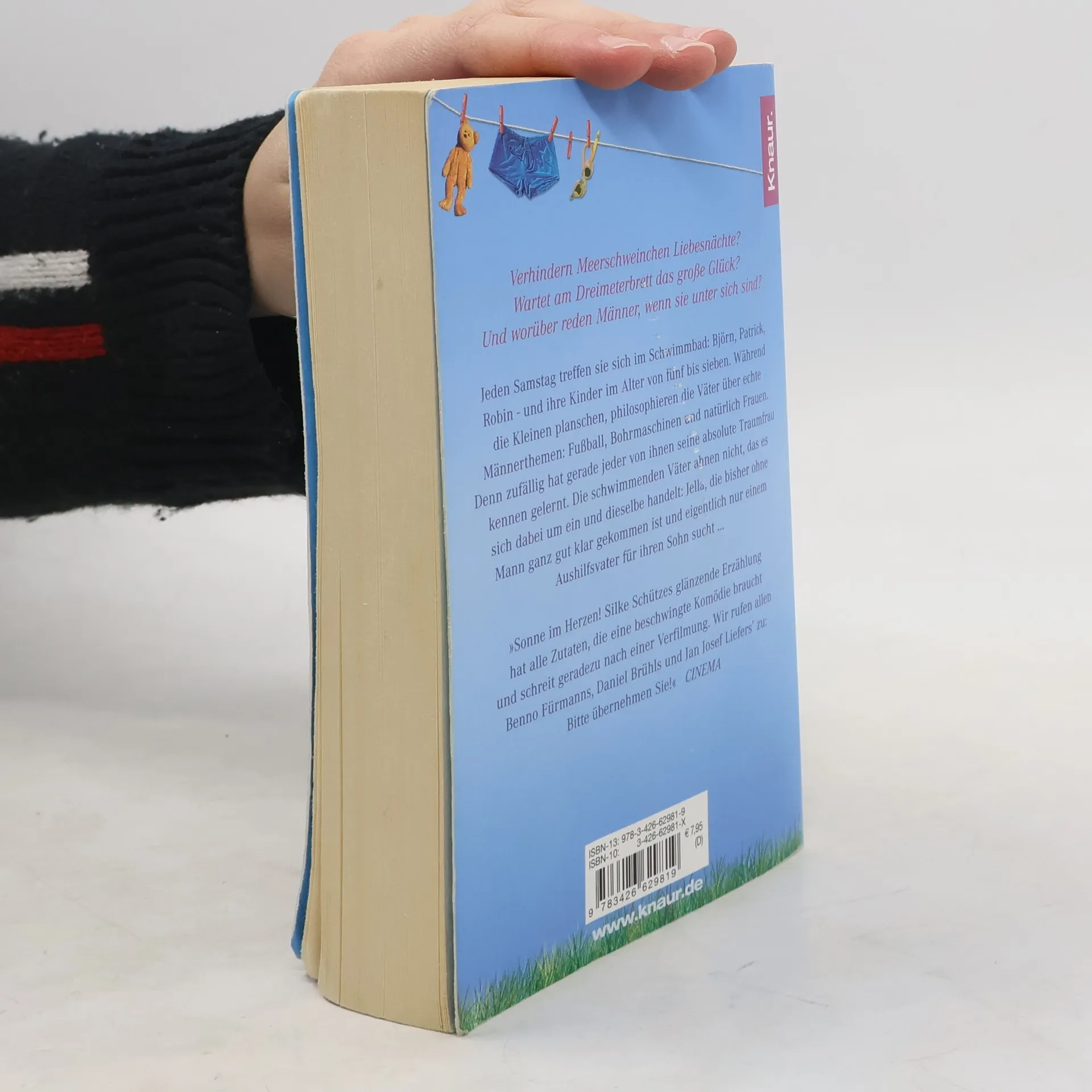 Verhindern Meerschweinchen Liebesnächte? Wartet am Dreimeterbrett das große Glück? Und worüber reden Männer, wenn sie unter sich sind? Jeden Samstag treffen sie sich im Schwimmbad: Björn, Patrick, Robin – und ihre Kinder im Alter von fünf bis sieben. Während die Kleinen planschen, philosophieren die Väter über echte Männerthemen: Fußball, Bohrmaschinen und natürlich Frauen. Denn zufällig hat gerade jeder von ihnen seine absolute Traumfrau kennen gelernt. Die schwimmenden Väter ahnen nicht, das es sich dabei um ein und dieselbe handelt: Jella, die bisher ohne Mann ganz gut klar gekommen ist und eigentlich nur einem Aushilfsvater für ihren Sohn sucht ...