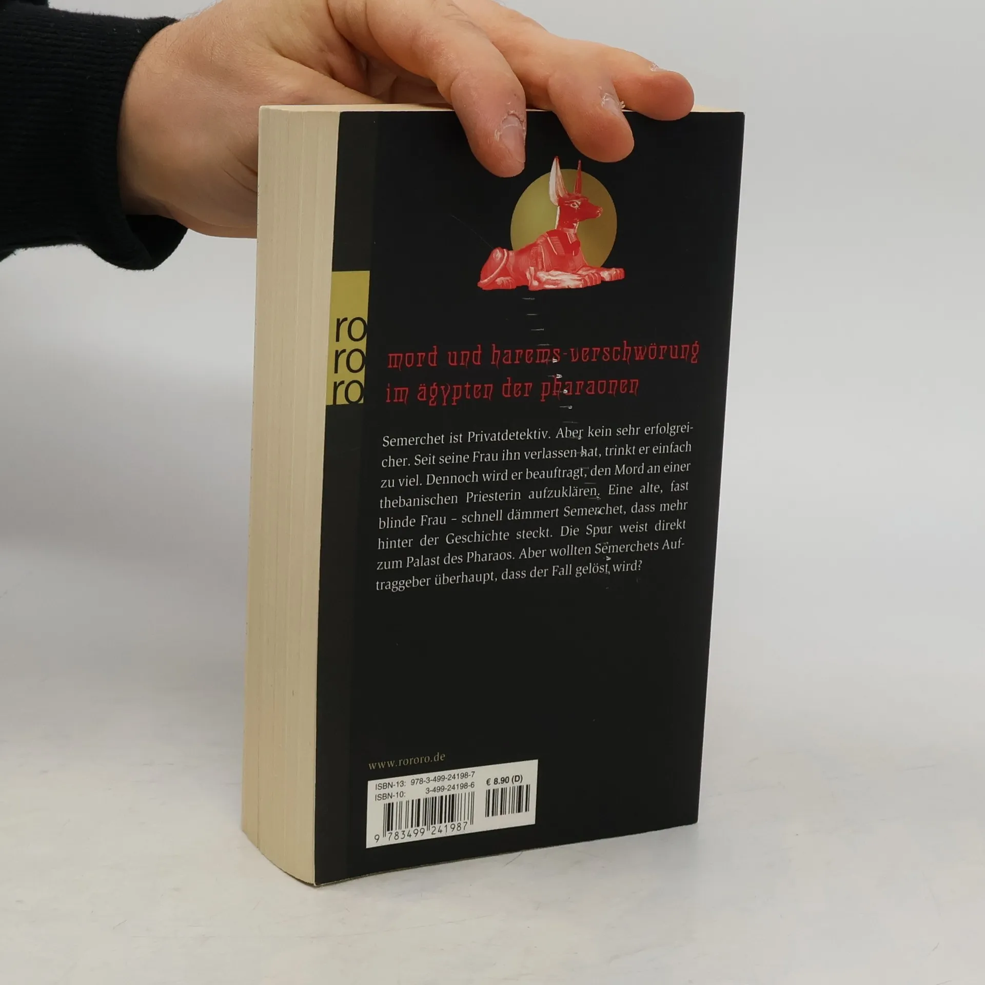 Mord und Harems-Verschwörung im Ägypten der Pharaonen Semerchet ist Privatdetektiv. Aber kein sehr erfolgreicher. Seit seine Frau ihn verlassen hat, trinkt er einfach zu viel. Dennoch wird er beauftragt, den Mord an einer thebanischen Priesterin aufzuklären. Eine alte, fast blinde Frau – schnell dämmert Semerchet, dass mehr hinter der Geschichte steckt. Die Spur weist direkt zum Palast des Pharaos. Aber wollten Semerchets Auftraggeber überhaupt, dass der Fall gelöst wird?