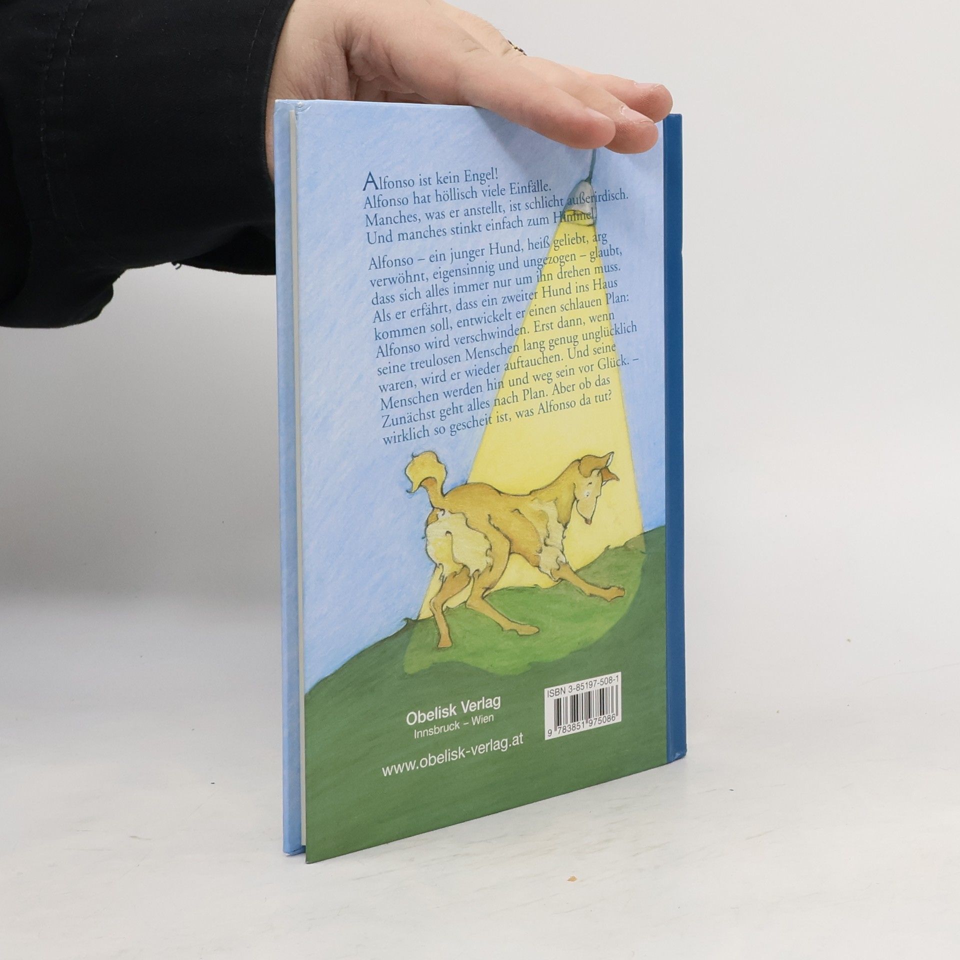 Alfonso ist kein Engel! Alfonso hat höllisch viele Einfälle. Manches, was er anstellt, ist schlicht außerirdisch. Und manches stinkt einfach zum Himmel. Alfonso – ein junger Hund, heiß geliebt, arg verwöhnt, eigensinnig und ungezogen - glaubt, dass sich alles immer nur um ihn drehen muss. Als er erfährt, dass ein zweiter Hund ins Haus kommen soll, entwickelt er einen schlauen, ausgeklügelten, wunderschönen Plan: Alfonso wird verschwinden! Alfonso wird seine Menschen verlassen. Nicht für immer natürlich. Nur für ein paar Tage! Dann, wenn seine treulosen Menschen lang genug unglücklich waren, wird Alfonso wieder auftauchen. Und seine Menschen werden hin und weg sein vor Glück. – Zunächst geht alles nach Plan. Aber ob das wirklich so gescheit ist, was Alfondo da tut?