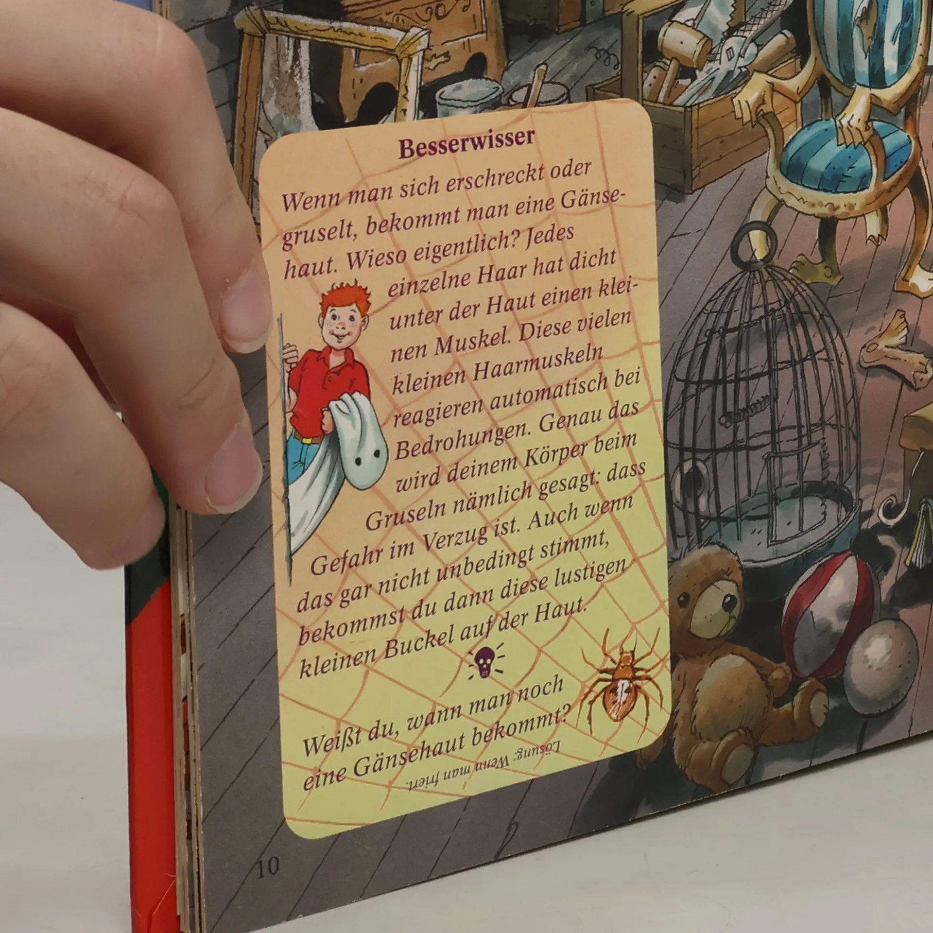 Woher kommt nur dieses gruselige Heulen? Was gibt es im düsteren Verließ zu entdecken? Und wer ist der geheimnisvolle Mann mit dem spitzen Hut? Bruno Besserwisser nimmt sich ein Herz und geht all diesen Fragen auf den Grund. Das spannende Pappbilderbuch mit schaurig-schönen Illustrationen und vielen unheimlichen Klappen lädt den Leser zur Geisterstunde ein.