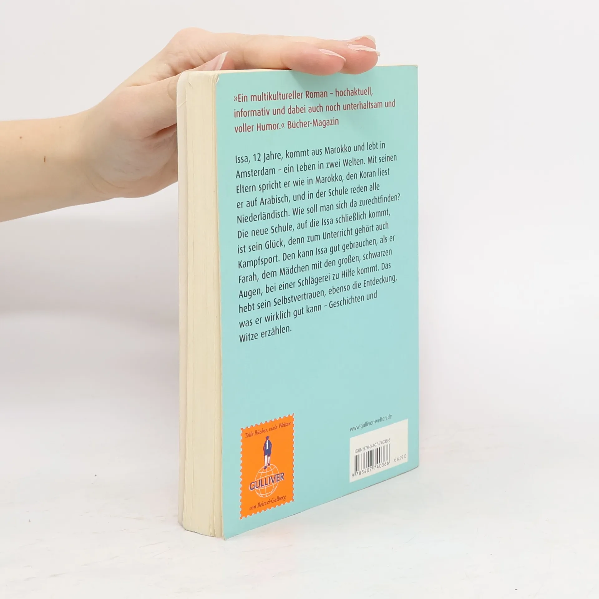 »Ein multikultureller Roman – hochaktuell, informativ und dabei auch noch unterhaltsam und voller Humor.« Bücher-Magazin Issa, 12 Jahre, kommt aus Marokko und lebt in Amsterdam – ein Leben in zwei Welten. Mit seinen Eltern spricht er Marokkanisch, den Koran liest er auf Arabisch und in der Schule reden alle Niederländisch. Wie soll man sich da zurechtfinden? Die neue Schule, auf die Issa schließlich kommt, ist sein Glück, denn zum Unterricht gehört auch Kampfsport. Den kann Issa gut gebrauchen, als er Farah, dem Mädchen mit den großen, schwarzen Augen, bei einer Schlägerei zu Hilfe kommt. Das hebt sein Selbstvertrauen, ebenso die Entdeckung, was er wirklich gut kann – Geschichten und Witze erzählen.