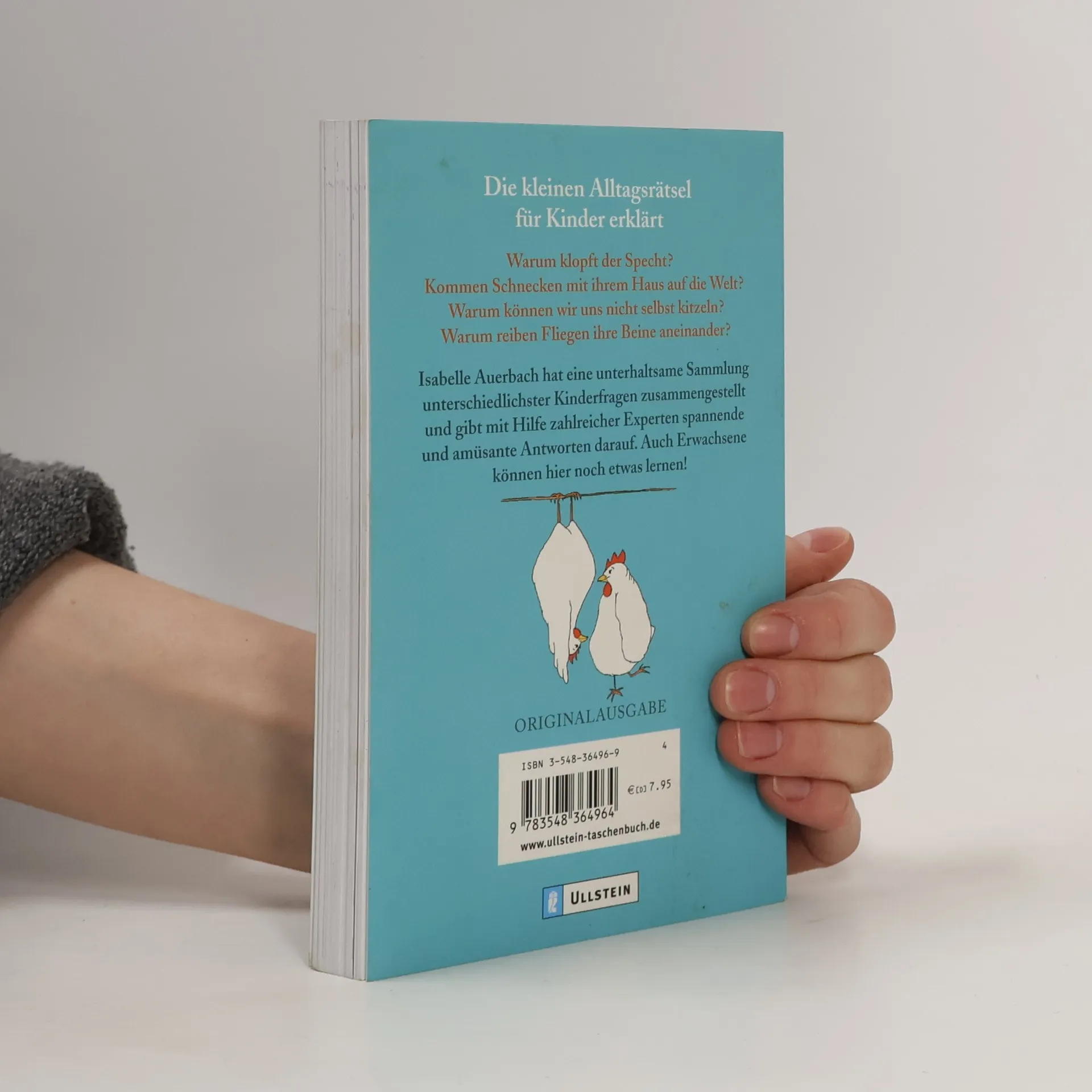 Kinder können einem Löcher in den Bauch fragen: Warum klopft der Specht? Kommen Schnecken mit ihrem Haus auf die Welt? Warum können wir uns nicht selbst kitzeln? Warum reiben Fliegen ständig ihre Beine aneinander? Isabelle Auerbach hat eine unterhaltsame Sammlung unterschiedlichster Kinderfragen zusammengestellt und gibt mit Hilfe zahlreicher Experten spannende und amüsante Antworten darauf. Auch Erwachsene können hier noch etwas lernen!