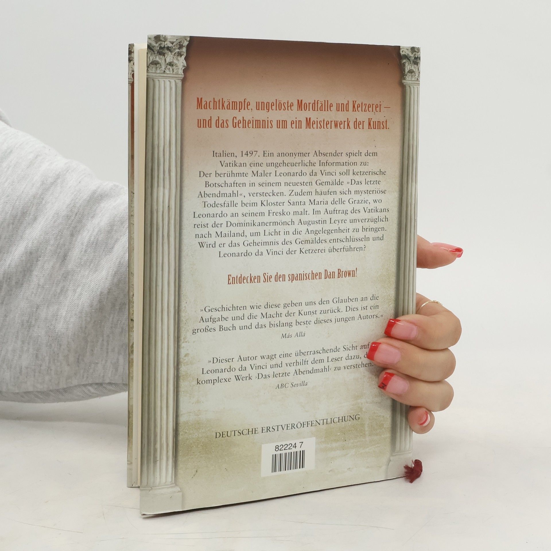 Unter Verdacht: Leonardo da Vinci. Ein Ketzer? Verschlüsselte Botschaften im 'Letzten Abendmahl'? Mailand, 1497. Trauer am Hof des Herzogs Ludovico Sforza - die blutjunge Herzogin Beatrice ist unerklärlicherweise an den Folgen einer Frühgeburt gestorben. In Rom erfährt der dominikanische Inquisitor Augustin Leyre als einer der Ersten davon. Das unchristliche Treiben des Herzogpaares missfällt ihm schon länger. Kurz darauf lässt ihm ein anonymer Absender eine ungeheuerliche Information zukommen: Leonardo da Vinci, erklärter Günstling der Herzogs, soll in seinem neuesten Gemälde 'Das letzte Abendmahl' ketzerische Botschaften verstecken. Zudem häufen sich mysteriöse Todesfälle um das Kloster Santa Maria delle Grazie, in dem Leonardo an seinem Fresko malt. Unverzüglich bricht Leyre nach Mailand auf, um Licht in die dubiose Angelegenheit zu bringen. Kann er die geheimen Botschaften des Gemäldes entschlüsseln und Leonardo tatsächlich der Ketzerei überführen?