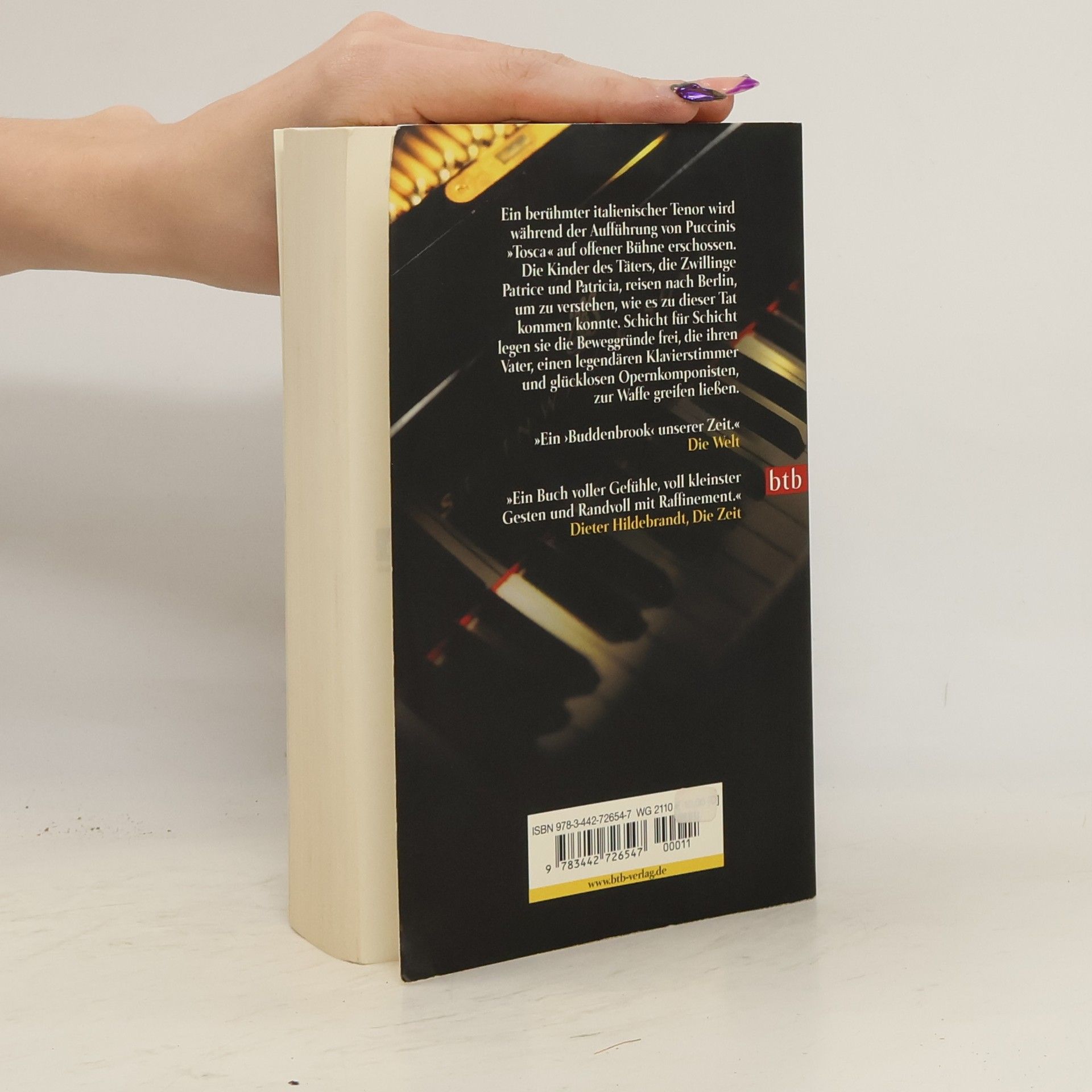 Ein berühmter italienischer Tenor wird während der Aufführung von Puccinis „Tosca“ auf offener Bühne erschossen. Die Kinder des Täters, die Zwillinge Patrice und Patricia, reisen nach Berlin, um zu verstehen, wie es zu dieser Tat kommen konnte. Schicht für Schicht legen sie die Beweggründe frei, die ihren Vater, einen legendären Klavierstimmer und glücklosen Opernkomponisten, zur Waffe greifen ließen. Jahre zuvor waren sie vor ihrer inzestuösen Liebe in verschiedene Hemisphären geflohen. Ihr Wiedersehen und die zunächst unbegreifliche Tat des Vaters führen dazu, daß sie ihre Sprachlosigkeit beenden und aufschreiben, wie sie ihre einstige Intimität erlebt haben. Ein befreiender Prozeß des Erinnerns beginnt.