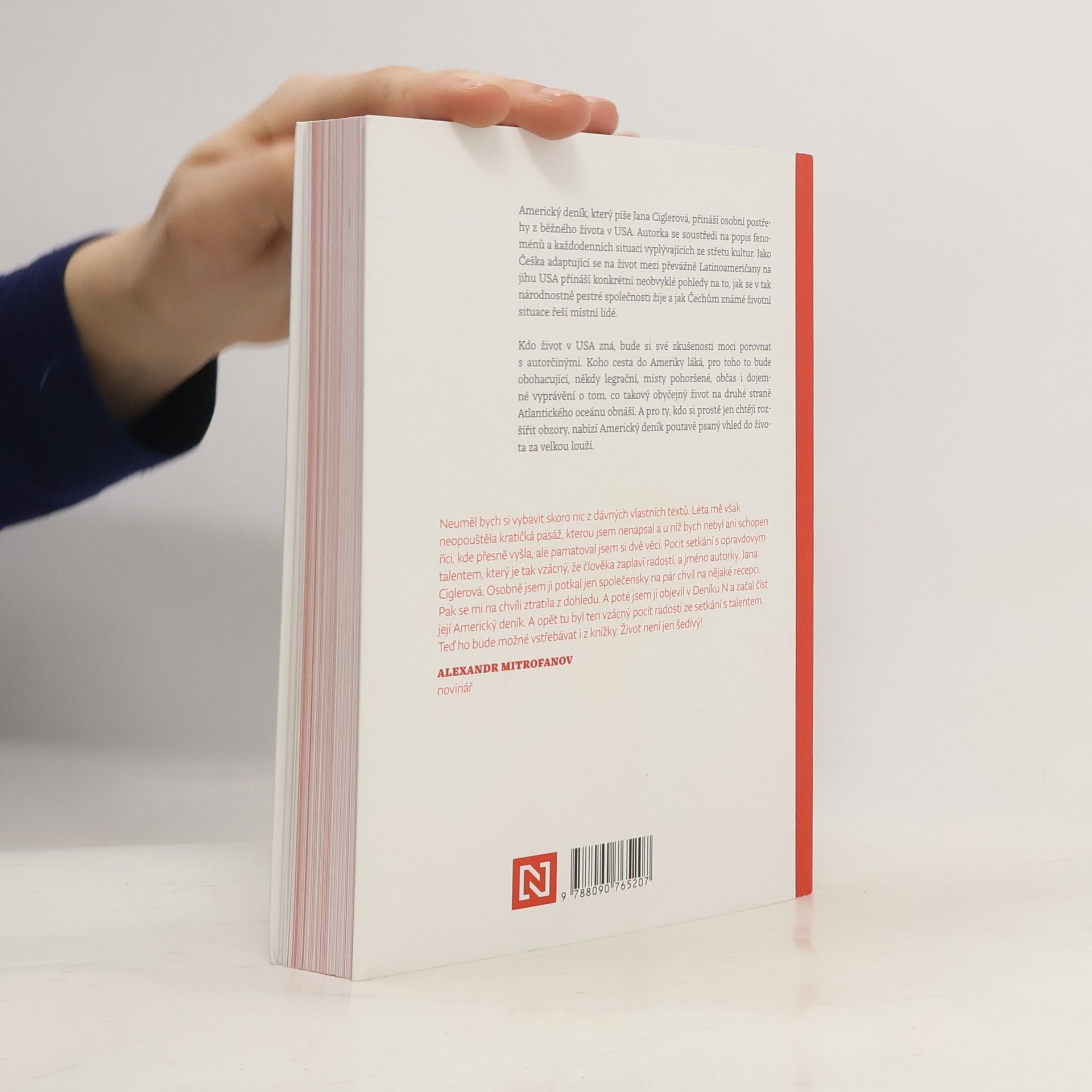 Americký deník, který píše Jana Ciglerová, jsou postřehy z běžného života v USA psané osobní formou. Autorka se soustředí na popis fenoménů a každodenních situací vyplývajících ze střetu kultur. Jako Češka adaptující se na život mezi převážně Latinoameričany na jihu USA přináší konkrétní neobvyklé postřehy z toho, jak odlišně se v tak národnostně pestré společnosti žije a jak Čechům známé životní situace řeší místní lidé. Kdo život v USA zná, bude si své postřehy moci porovnat s autorčinými. Koho cesta do Ameriky láká, pro toho to bude obohacující, někdy legrační, místy pohoršené, občas i dojemné vyprávění o tom, co takový obyčejný život na druhé straně Atlantického oceánu obnáší. A pro ty, co si jen rádi rozšiřují obzory, půjde o poutavě psaný vhled do života za velkou louží.