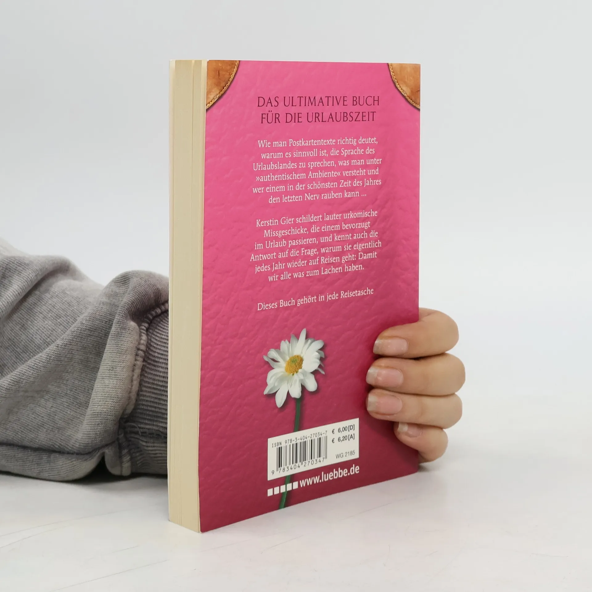 Dieses Buch gehört in jede Reisetasche Wie man Postkartentexte richtig deutet, warum es sinnvoll ist, die Sprache des Urlaubslandes zu sprechen, was man unter „authentischem Ambiente“ versteht und wer einem in der schönsten Zeit des Jahres den letzten Nerv rauben kann ... Kerstin Gier schildert lauter urkomische Missgeschicke, die einem bevorzugt im Urlaub passieren, und kennt auch die Antwort auf die Frage, warum sie eigentlich jedes Jahr wieder auf Reisen geht: Damit wir alle was zum Lachen haben.