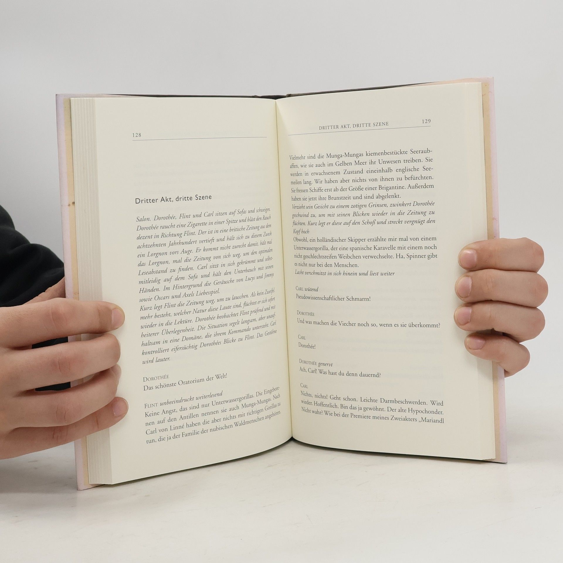 Die flamboyante Theatergroteske spielt in einer noblen Wohnung am Wiener Stadtrand, wo vier Vertreter einer urbanen linksliberalen Kulturkonsumentenszene sich selbst feiern. Dorothé, die Gastgeberin, ist Filmemacherin; Lucy, ein ewig junges Sonnengemüt, ist Ethnologiestudentin; Carl ein ausgebrannter Literat. Und da wäre noch Axel, der Benjamin der Runde, er ist Museumskurator. Diese illustre Abendgesellschaft überhört die Radiodurchsage, dass drei gefährliche Schizophrene aus einer nahe liegenden psychiatrischen Anstalt ausgebrochen seien. Der Anführer der Bande, eine einbeinige Frau, glaubt, der berüchtigte Piratenkapitän Flint zu sein, seine „Adjudanten“ halten sich für Oscar Wilde und den osmanischen Piraten Jimmy Fish. Ausgerechnet in Dorothées Wohnung dringen die drei Irren ein …