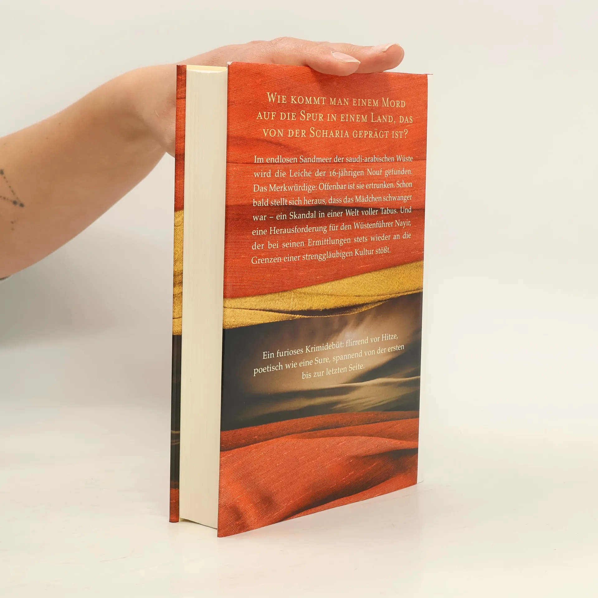Ein junges Mädchen, das in der Wüste ertrinkt und ein Ermittler, der nicht ermitteln darf … In einem entlegenen Wadi im endlosen Sandmeer der Rub-al-Chali-Wüste Saudi-Arabiens wird die Leiche eines schwangeren jungen Mädchens aus reichem Hause gefunden. Doch wie kommt man dem Ver-brechen auf die Spur in einem Land, das durch die Scharia ge-prägt ist? In dem jeder Kontakt zwischen jungen Männern und Frauen unterbunden wird und eine uneheliche Schwangerschaft Schande über die gesamte Familie bringt? Nayir, ein Freund der Familie, den der verzweifelte Bruder des Mädchens um Hilfe bittet, merkt schon bald, dass er alle Tabus seines Landes und seines Glaubens brechen muss, um den Fall zu lösen.
