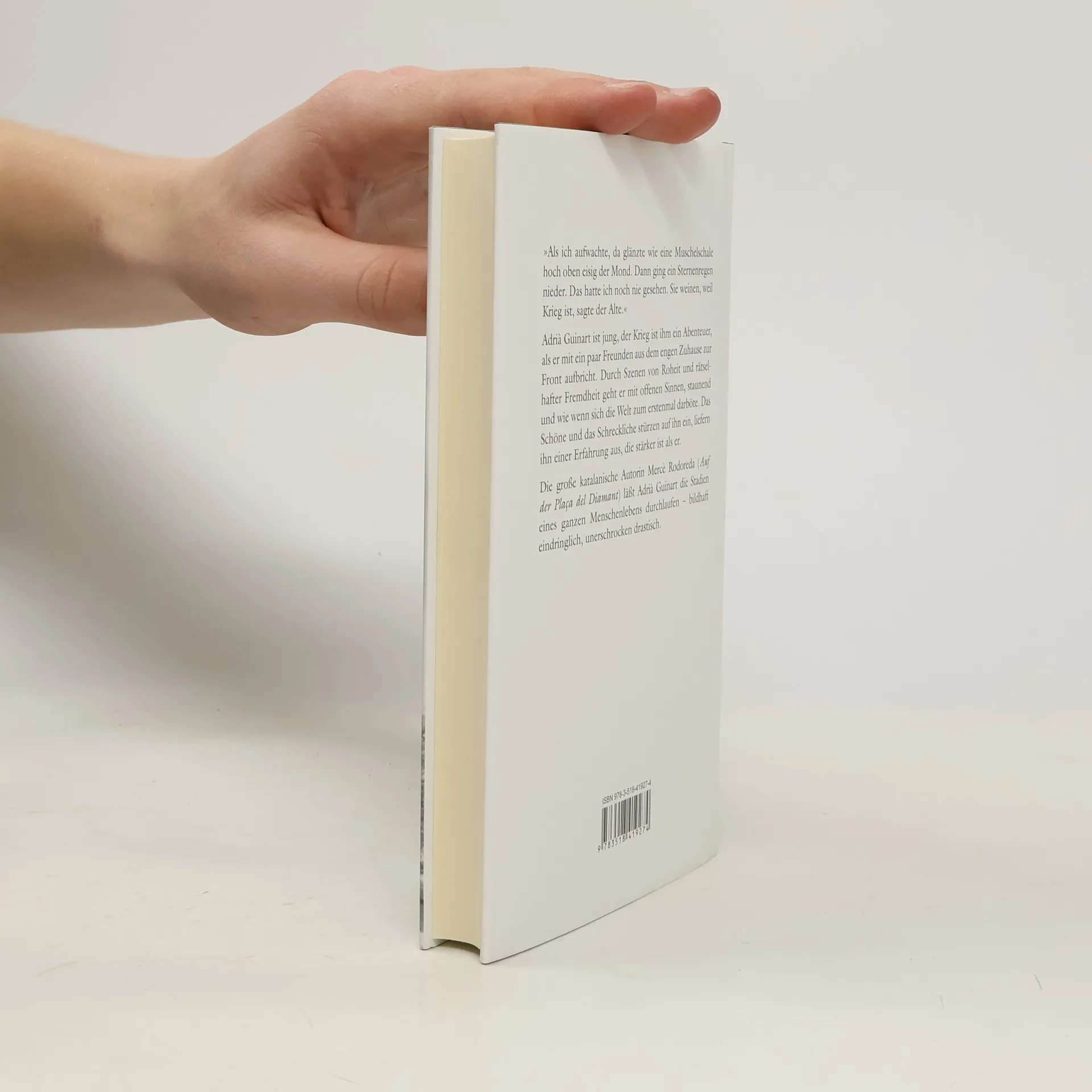 »Als ich aufwachte, da glänzte wie eine Muschelschale hoch oben eisig der Mond. Dann ging ein Sternenschauer nieder. Das hatte ich noch nie gesehen. Sie weinen, weil Krieg ist, sagte der Alte.« Adrià Guinart ist jung, der Krieg ist ihm ein Abenteuer, als er mit ein paar Freunden zur Front aufbricht. Durch Szenen von Roheit und rätselhafter Fremdheit geht er mit offenen Sinnen, staunend und wie wenn sich die Welt zum erstenmal darböte. Das Schöne und das Schreckliche stürzen auf ihn ein, liefern ihn einer Erfahrung aus, die stärker ist als er.