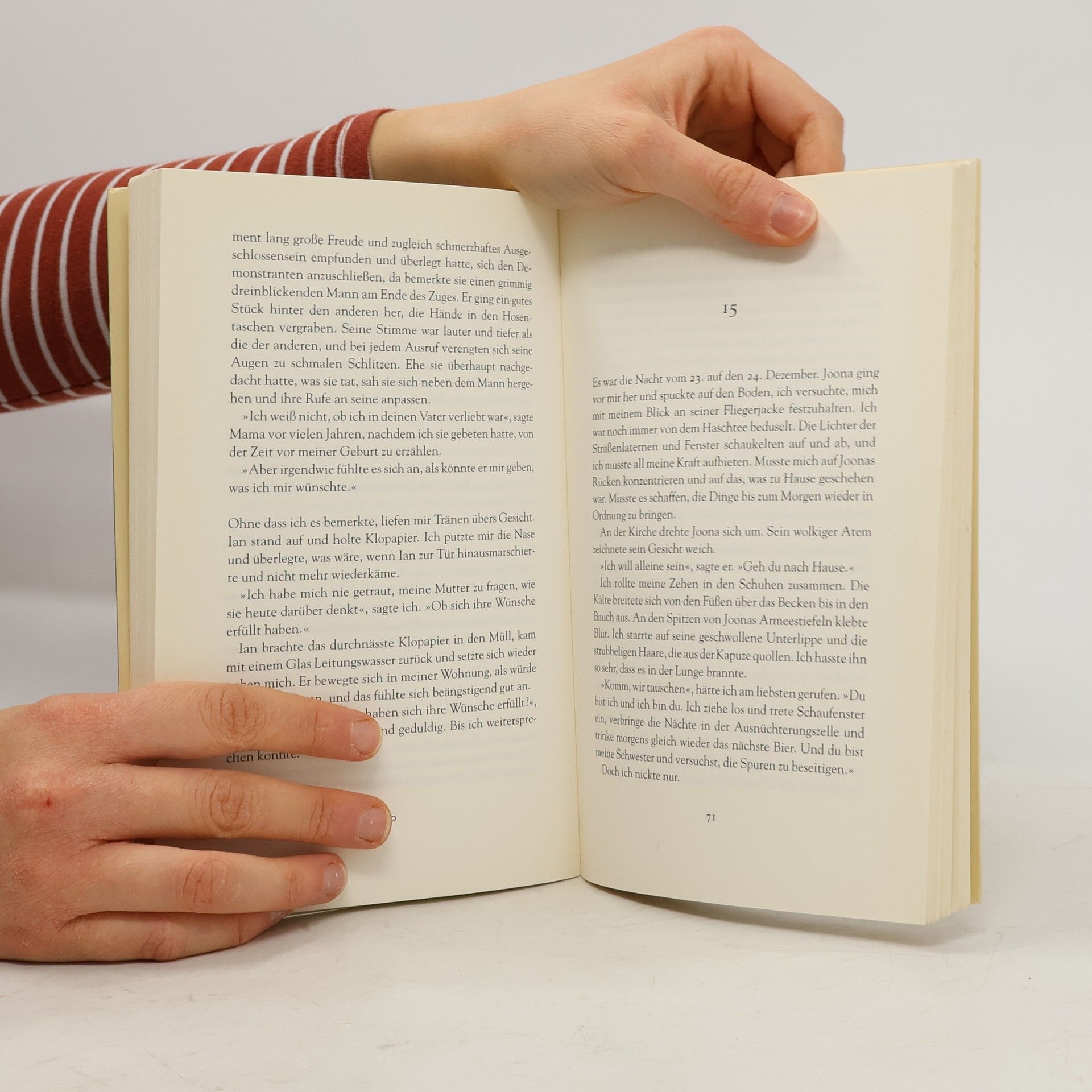 War es ein Unfall? Ein Mordversuch? Annas Bruder Joona ist überzeugt, dass der Vater die Familie umbringen wollte, als er mit dem Auto gegen einen Baum raste. Die häufigen, unkontrollierten Gewaltausbrüche des Vaters nähren Joonas Verdacht. Aber Joona war schon immer misstrauisch, und schließlich steigert sich die Erfahrung von Gewalt in der Kindheit bei ihm zur Psychose. Anna hingegen, seine jüngere Schwester, bietet dem Leben die Stirn, behauptet ihr Recht auf ein eigenes Leben. Sie erlaubt der Vergangenheit nicht, unbeschränkt Macht über sie haben. - Ja, als kleines Mädchen auf dem Schoß des Vaters fühlte sie sich glücklich, wenn sie weinen musste. Trotz allem. Sie hat gelernt, die Widersprüche des Lebens auszuhalten.