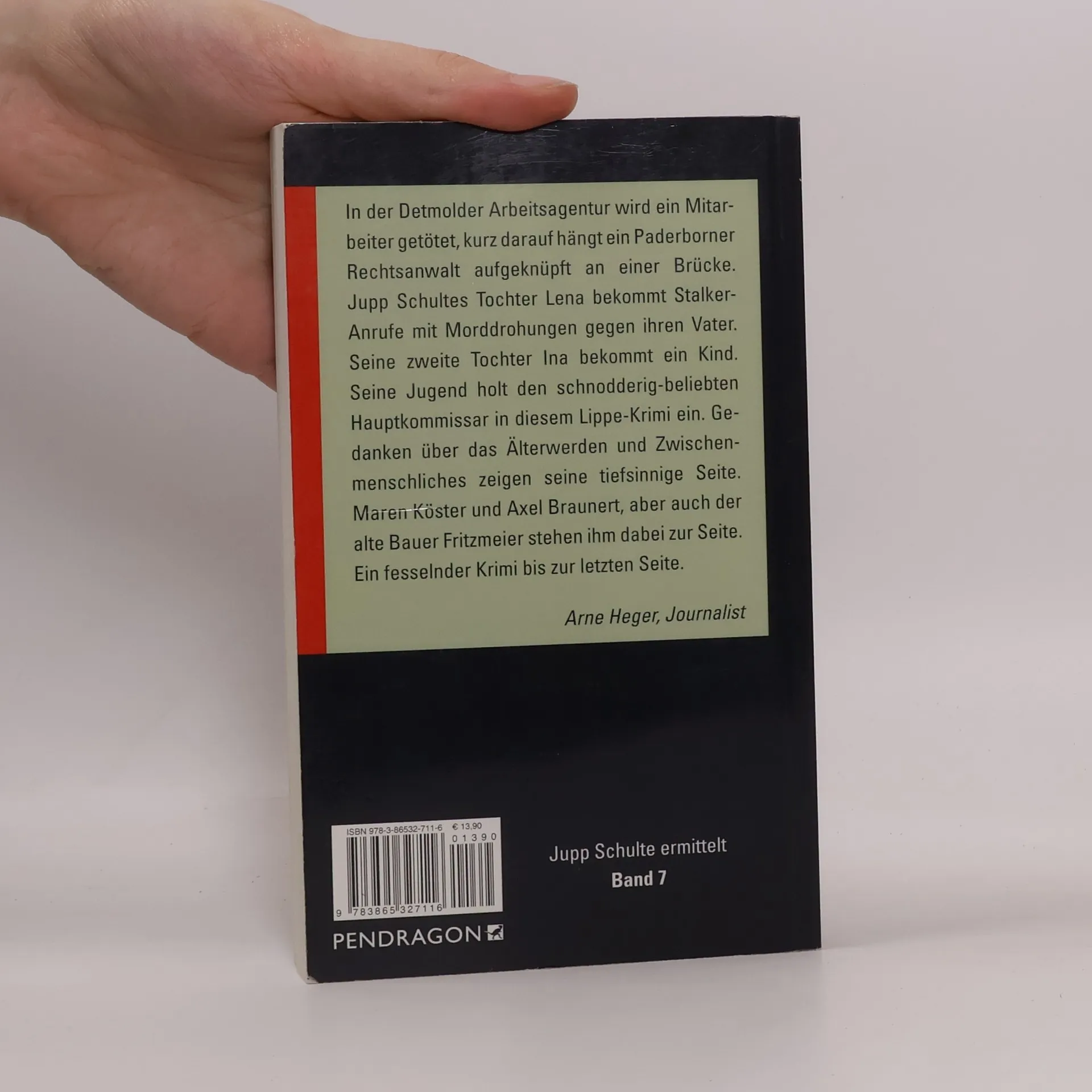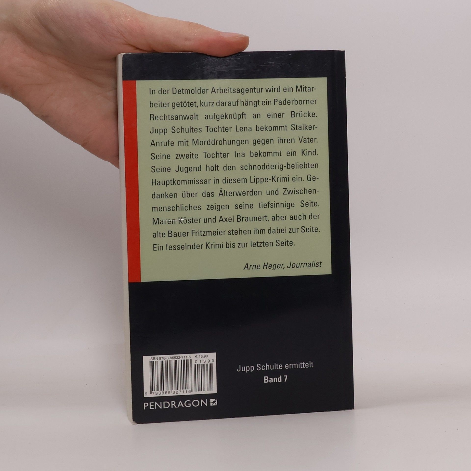 In der Detmolder Arbeitsagentur wird ein Mitarbeiter hingerichtet, kurz darauf hängt ein Paderborner Rechtsanwalt aufgeknüpft an einer Brücke. Schulten Jupps Tochter Lena bekommt Stalker-Anrufe mit Morddrohungen gegen ihren Vater. Seine zweite Tochter Ina bekommt ein Kind. Opa mit Anfang fünfzig und Morddrohungen, hat beides vielleicht sogar indirekt etwas miteinander zu tun? Seine Jugend holt den schnodderig-beliebten Hauptkommissar in diesem neuen Lippe-Krimi ein. Gedanken über das Älterwerden und Zwischenmenschliches zeigen seine tiefsinnige Seite. Maren Köster und Axel Braunert, aber auch der alte Bauer Fritzmeier stehen ihm dabei zur Seite.
