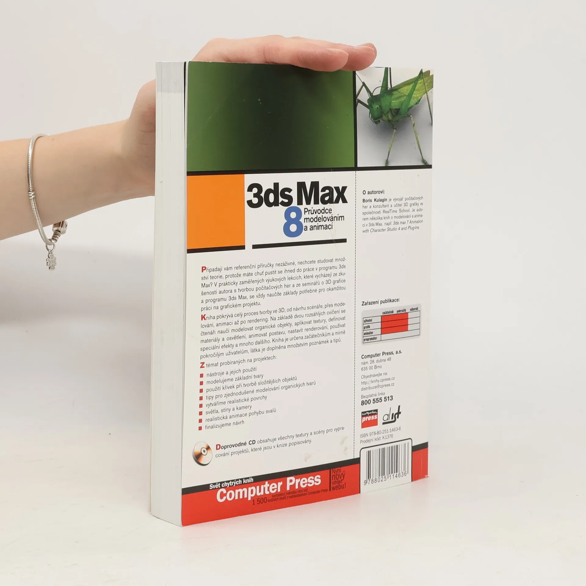 Popis produktu Připadají vám referenční příručky nezáživné, nechcete studovat množství teorie, protože máte chuť pustit se ihned do práce v programu 3ds Max? V prakticky zaměřených výukových lekcích, které vycházejí ze zkušeností autora s tvorbou počítačových her a ze seminářů o 3D grafice a programu 3ds Max, se vždy naučíte základy potřebné pro okamžitou práci na grafickém projektu. Kniha pokrývá celý proces tvorby ve 3D, od návrhu scénáře, přes modelování, animaci až po rendering. Na základě dvou rozsáhlých cvičení se čtenáři naučí modelovat organické objekty, aplikovat textury, definovat materiály a osvětlení, animovat postavu, nastavit renderování, používat speciální efekty a mnoho dalšího. Kniha je určena začátečníkům a mírně pokročilým uživatelům, látka je doplněna množstvím poznámek a tipů. Z témat probíraných na projektech: -nástroje a jejich použití -modelujeme základní tvary -použití křivek při tvorbě složitějších objektů -tipy pro zjednodušené modelování organických tvarů -vytváříme realistické povrchy -světla, stíny a kamery -realistická animace pohybu svalů -finalizujeme návrh Doprovodné CD obsahuje všechny textury a scény pro vypracování projektů, které jsou v knize popisovány.