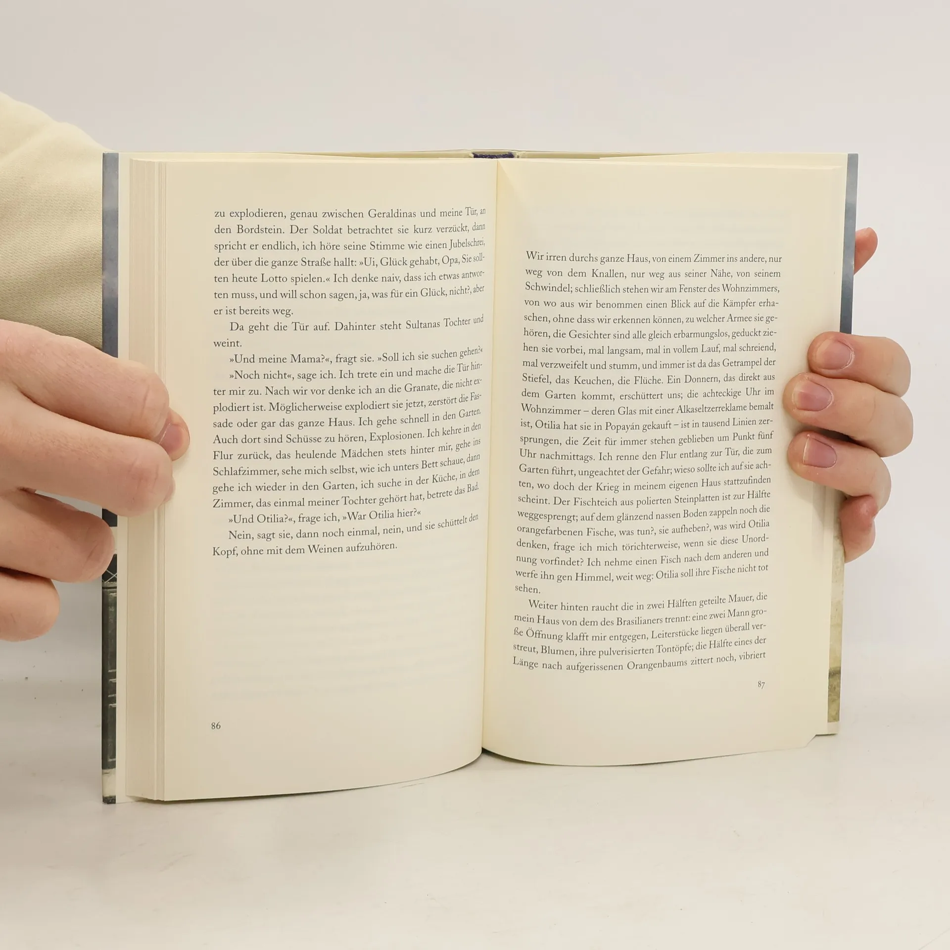 Ismael und seine Frau Otilia leben seit vier Jahrzehnten in dem kleinen Dorf San José. An den Nachmittagen beobachtet der emeritierte Professor heimlich die schöne Nachbarin, wenn sie sich im Garten in der Sonne räkelt. Diese Idylle wird eines Tages jäh gestört, als Ismael, von einem Spaziergang zurückgekehrt, erfährt, dass Soldaten den Nachbarn und andere Männer entführt haben. Otilia ist ins Dorf gegangen, um ihn zu warnen. Sofort macht Ismael sich auf die Suche, von Stunde zu Stunde ängstlicher, verzweifelter. Währenddessen wird San José von Angriffen der Guerilla und des Paramilitärs erschüttert, und als die Gewalt endgültig eskaliert, entschließen sich die meisten Bewohner zur Flucht. Nur Ismael bleibt im zerstörten Dorf zurück und wartet auf seine Frau. Evelio Rosero hat mit San José einen ähnlich eindrücklichen, beklemmenden Ort geschaffen wie vor ihm Juan Rulfo oder Gabriel García Márquez, einen Ort, der von Gewalt ebenso beherrscht wird wie von der Sehnsucht nach einer friedlichen Vergangenheit, in der das größte Verbrechen eines alten Mannes darin bestand, der schönen Nachbarin hinterherzuspionieren.