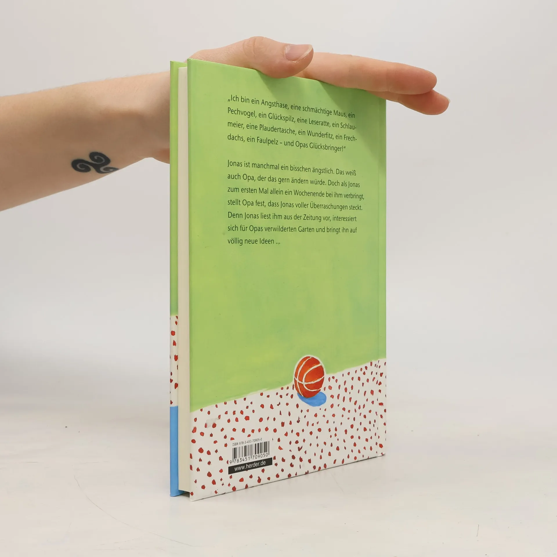 Als Jonas zum ersten Mal ein Wochenende allein bei seinem Opa verbringt, fühlt er sich mulmig. Sein Opa hält nämlich nicht viel vom Ängstlichsein. Wenn er von seiner Kindheit erzählt, dann nur, wie tapfer er immer war. Ein echter Junge eben. Und so einen will er auch aus Jonas machen. Im Laufe des Wochenendes stellen die beiden dann aber verwundert fest: Jonas ist zwar manchmal ein Angsthase, ein Pechvogel und ein Spielverderber, aber eben auch ein Glückspilz, ein kleiner Frechdachs und ein echter Glücksbringer! Denn mittlerweile haben sich die beiden so zu mögen begonnen, wie sie sind. Und Opa hat endlich wieder lachen gelernt. Eine leise, humorvolle Geschichte über eine Opa/Enkel-Beziehung, die sich grundlegend wandelt, als beide zwei volle Tage lang miteinander auskommen müssen. Rührend und doch witzig.