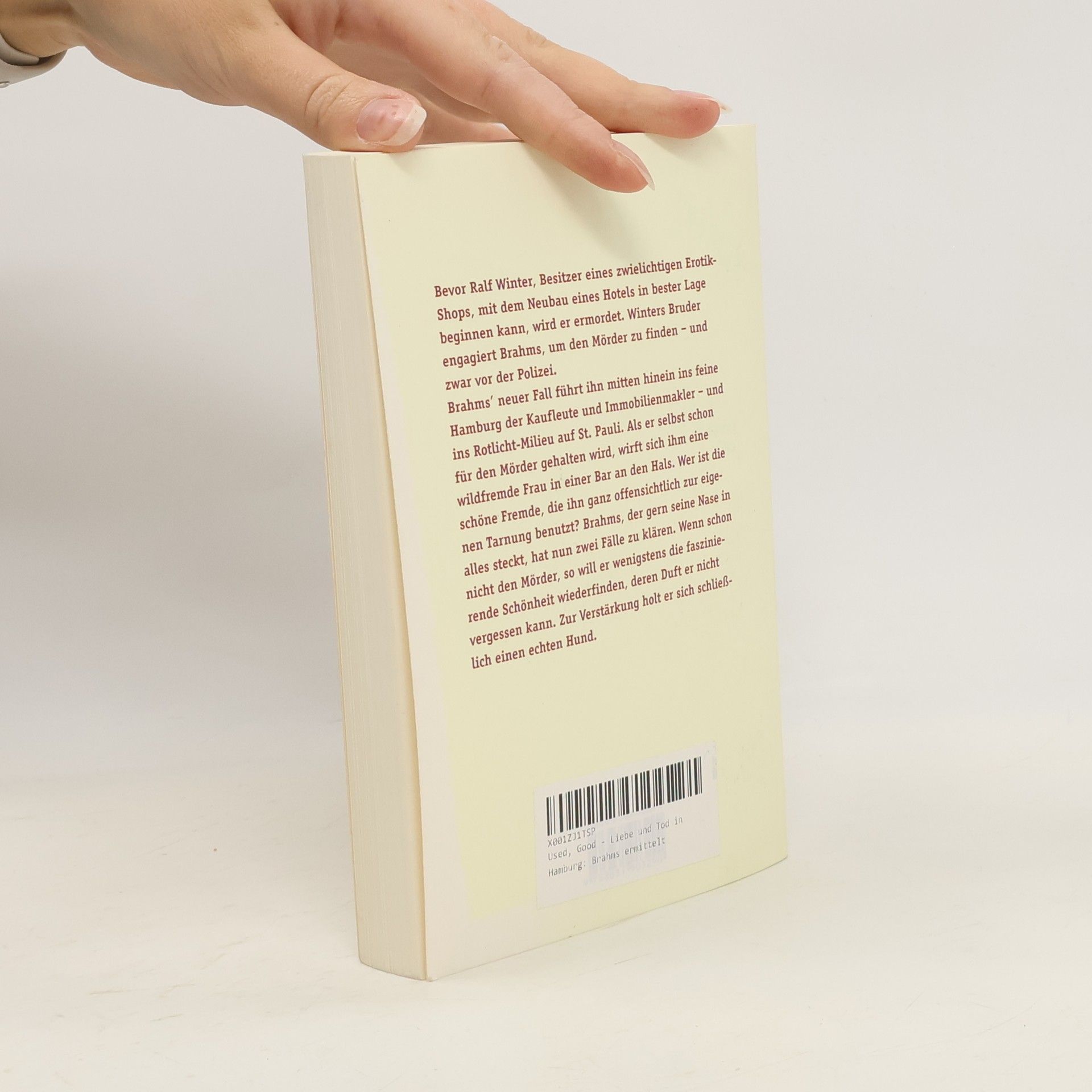 Bevor Ralf Winter, Besitzer eines zwielichtigen Erotik-Shops, mit dem Neubau eines Hotels in bester Lage beginnen kann, wird er ermordet. Winters Bruder engagiert Brahms, um den Mörder zu finden – und zwar vor der Polizei. Brahms’ neuer Fall führt ihn mitten hinein ins feine Hamburg der Kaufleute und Immobilienmakler – und ins Rotlicht-Milieu auf St. Pauli. Als er selbst schon für den Mörder gehalten wird, wirft sich ihm eine wildfremde Frau in einer Bar an den Hals. Wer ist die schöne Fremde, die ihn ganz offensichtlich zur eigenen Tarnung benutzt? Brahms, der gern seine Nase in alles steckt, hat nun zwei Fälle zu klären. Wenn schon nicht den Mörder, so will er wenigstens die faszinierende Schönheit wiederfinden, deren Duft er nicht vergessen kann. Zur Verstärkung holt er sich schließlich einen echten Hund.
