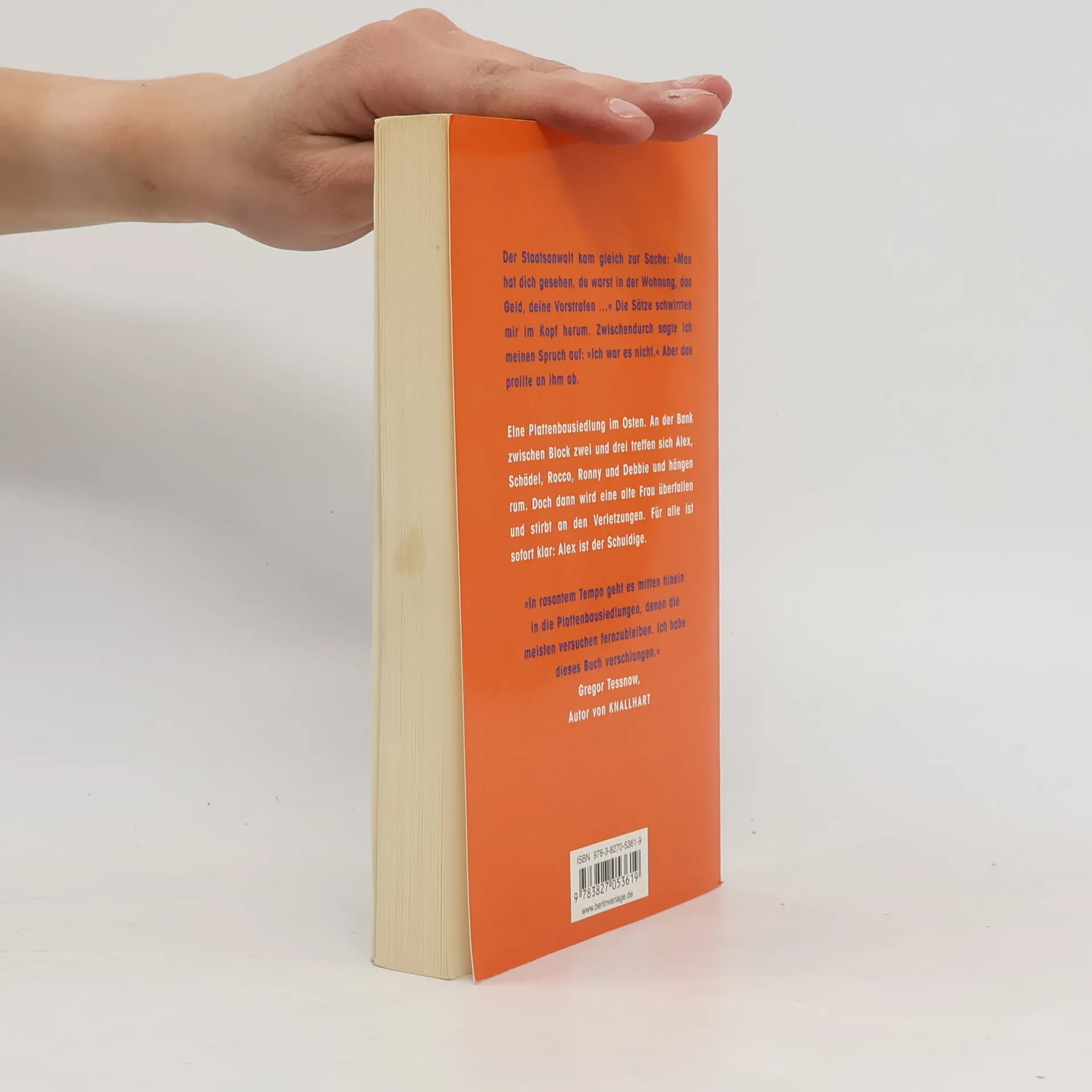Schwedt, eine Kleinstadt im Osten. Plattenbauten, Arbeitslosigkeit, Langeweile und Neonazis. An der Bank zwischen Block zwei und drei treffen sich Alex, Schädel, Rocco, Ronny und Debbie und hängen rum. Hip-Hopper, Rechte, Sprayer, Skins und Skater – sie alle wohnen in der Platte, und das schweißt zusammen. Doch dann wird eine alte Frau überfallen und stirbt an den Verletzungen. Dummerweise hatte Alex ihr kurz zuvor noch die Einkäufe in die Wohnung getragen und dabei einen Geldschein mitgehen lassen. Für alle ist sofort klar: Alex ist schuldig. Auch die Polizei und die Medien sind davon überzeugt, dass Alex ein Mörder ist. Plötzlich hält aus der Clique niemand mehr zu ihm – außer Debbie.