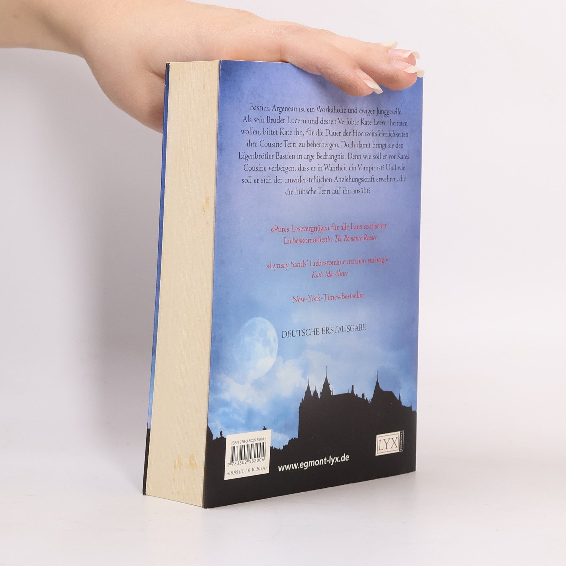 Als ewiger Junggeselle genießt Bastien Argeneau seine Freiheit. Besonders seit sein Bruder Lucern mit seiner Verlobten Kate Leever zusammengezogen ist und er das Penthouse der Familie ganz für sich allein hat. Als Kate ihn bittet, für die Dauer der Hochzeit ihre Cousine Terri zu beherbergen, gerät der Eigenbrötler Bastien jedoch in Bedrängnis. Wie soll er vor Kates Cousine verbergen, dass er in Wahrheit ein Vampir ist? Und noch entscheidender: Wie kann er sich der unwiderstehlichen Anziehungskraft erwehren, die die hübsche Terri auf ihn ausübt? „Eine witzige, verrückte Geschichte ... Leserinnen von Vampirromanen werden sich vor Lachen kaum halten können. Und die Liebesszenen sind ein erotischer Hochgenuss!“ Publishers Weekly