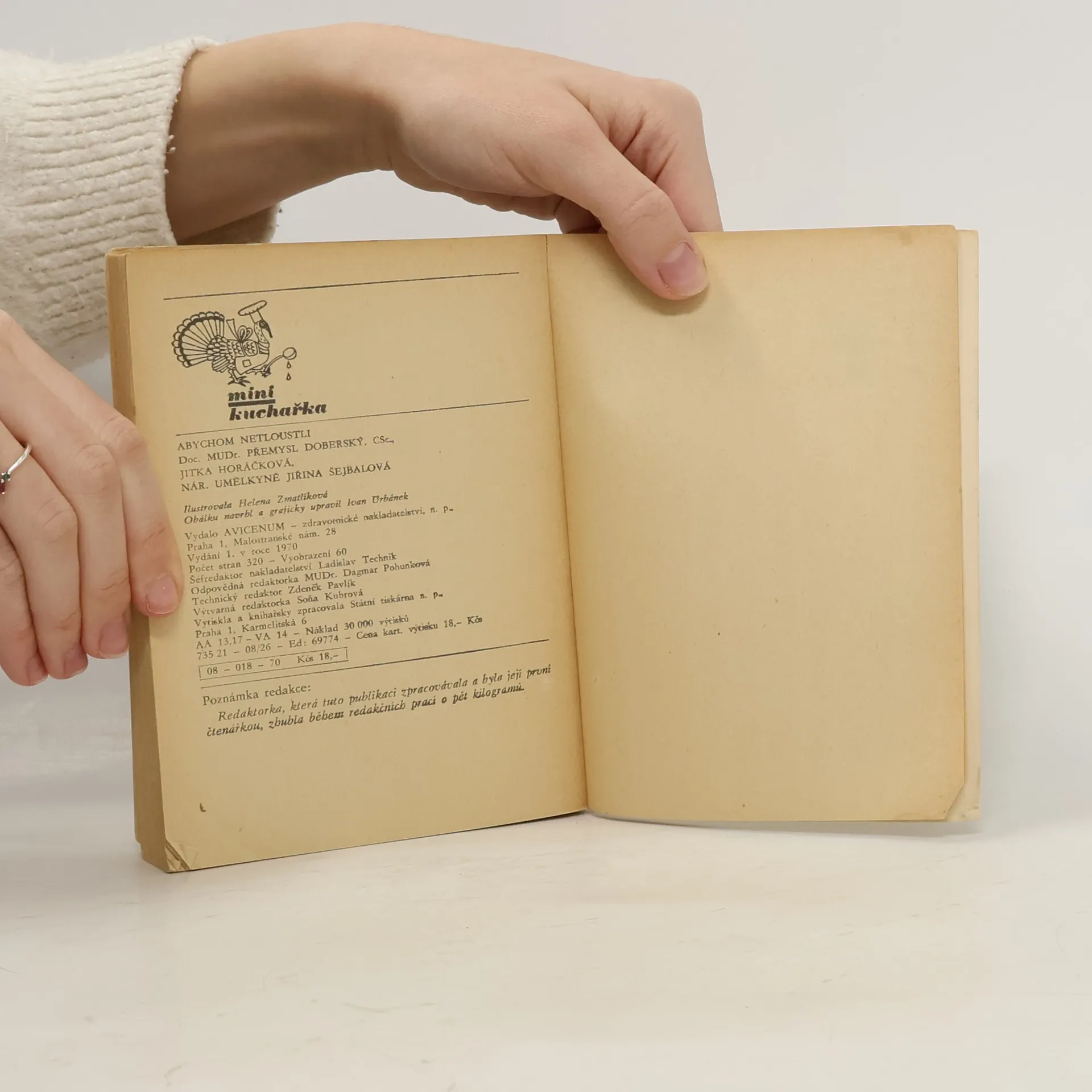 Rady a předpisy, jak bojovat proti otylosti, obsahují vedle obecností základní diety pro otylé, jídelníčky pro ovocné a zeleninové odlehčovací dny, dietní návody pro ostré redukční režimy, pro mírný odtučňovací průběh i pouze pro udržení váhy a všímají si celkového životního stylu. Připojena je tabulka kalorických a biologických hodnot hlavních potravin a nápojů. Předmluvu napsala a poznámkami doprovází národní umělkyně herečka Jiřina Šejbalová.