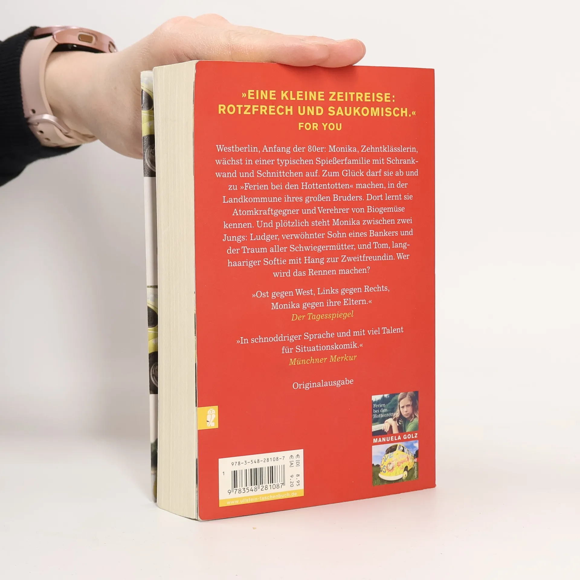Westberlin, Anfang der 80er: Monika, Zehntklässlerin, wächst in einer typischen Spießerfamilie mit Schrankwand und Schnittchen auf. Zum Glück darf sie ab und zu 'Ferien bei den Hottentotten' machen, in der Landkommune ihres großen Bruders. Dort lernt sie Atomkraftgegner und Verehrer von Biogemüse kennen. Und plötzlich steht Monika zwischen zwei Jungs: Ludger, verwöhnter Sohn eines Bankers und der Traum aller Schwiegermütter, und Tom, langhaariger Softie mit Hang zur Zweitfreundin. Wer wird das Rennen machen?