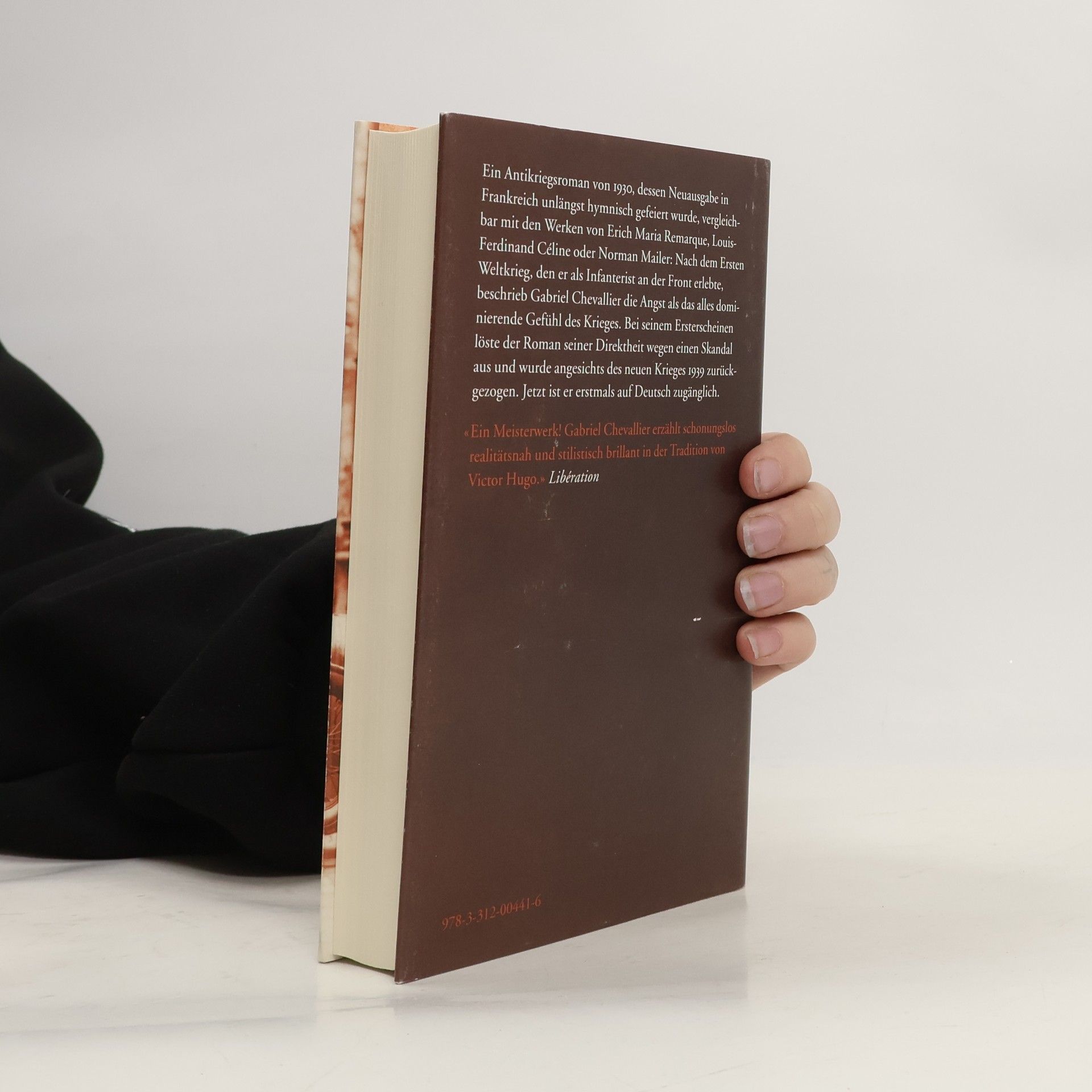 Ein Antikriegsroman von 1930, dessen Neuausgabe in Frankreich 2008 hymnisch gefeiert wurde, vergleichbar mit den Werken von Remarque, Céline oder Norman Mailer: Nach dem Ersten Weltkrieg, den er als Infanterist an der Front verbrachte, beschrieb Gabriel Chevallier seine Erlebnisse in Romanform: Der junge Student Jean Dartemont wird eingezogen und an die Front geschickt, und dort bleibt er vier Jahre lang, unterbrochen nur von einem Lazarettaufenthalt. Monatelang harrt er mit seinen Kameraden in den Schützengräben aus, bedroht von Kugeln, Kälte, Durchfall und grenzenloser Angst. Bei seinem Ersterscheinen löste der Roman seiner Direktheit wegen einen Skandal aus und wurde angesichts des neuen Krieges 1939 zurückgezogen. Jetzt ist er erstmals auf Deutsch zugänglich.