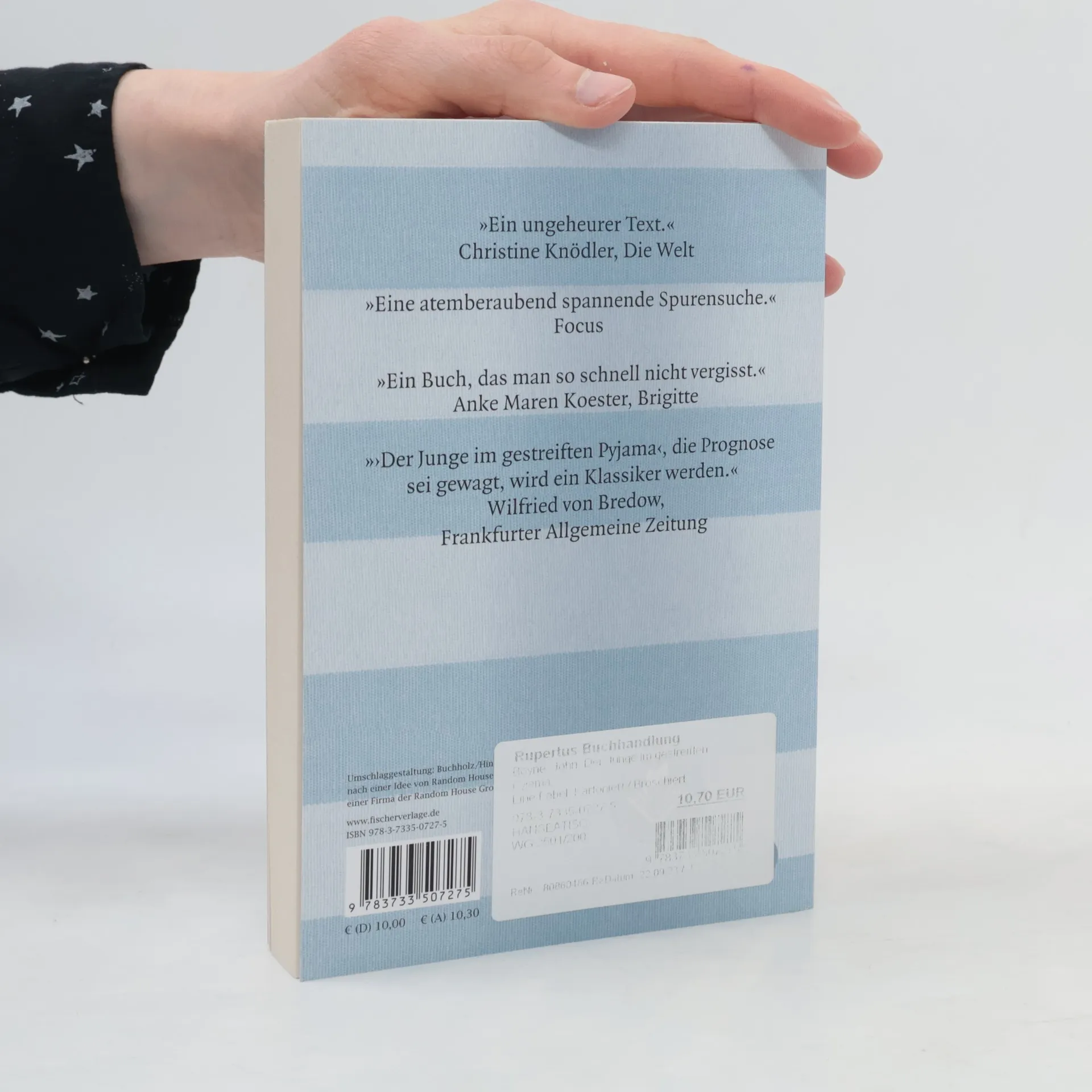 Die Geschichte von »Der Junge im gestreiften Pyjama« ist schwer zu beschreiben. Normalerweise geben wir an dieser Stelle ein paar Hinweise auf den Inhalt, aber bei diesem Buch - so glauben wir - ist es besser, wenn man vorher nicht weiß, worum es geht. Wer zu lesen beginnt, begibt sich auf eine Reise mit einem neunjährigen Jungen namens Bruno. (Und doch ist es kein Buch für Neunjährige.) Früher oder später kommt er mit Bruno an einen Zaun. Zäune wie dieser existieren auf der ganzen Welt. Preise und Auszeichnungen für »Der Junge im gestreiften Pyjama«: Nominiert für den Deutschen Jugendliteraturpreis 2008 (Jugendjury) Buch des Monats Dezember 2007 der Deutschen Akademie für Kinder- und Jugendliteratur e. V., Volkach Empfehlungsliste des Katholischen Kinder- und Jugendbuchpreises 2008 Ausgezeichnet als Penguin Orange Readers’ Group Book of the Year 2009 Ausgezeichnet mit dem Irish Book Award: Bestes Kinderbuch des Jahres Ausgezeichnet mit dem Listener's Choice Book of the Year: Bestes Hörbuch des Jahres (UK) Nominiert für die Carnegie Medal (UK) Nominiert für den Ottakar's Book Prize (UK) Nominiert für den Paolo Ungari Prize (Italien)