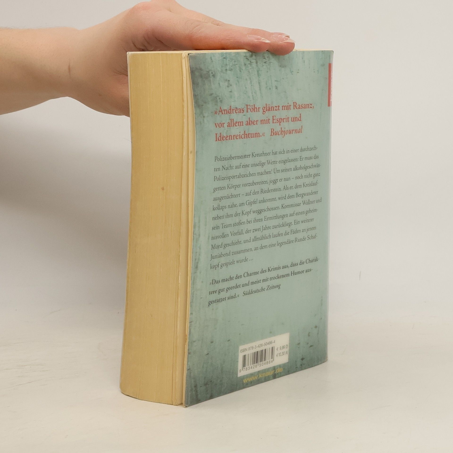 Im zweiten Band der Wallner & Kreuther-Krimireihe geht es hoch hinaus auf den Riederstein-Berg in Oberbayern. Polizeiobermeister Kreuthner hat sich in einer durchzechten Nacht auf eine unselige Wette eingelassen: Er muss das Polizeisportabzeichen machen! Um seinen alkoholgeschwängerten Körper vorzubereiten, joggt er – noch nicht ganz ausgenüchtert – auf den Riederstein. Kurz vor dem Gipfel wird neben ihm ein Bergwanderer erschossen. Der Tote, Stanislaus Kummeder, ein Kleinkrimineller, wirft Fragen auf: Was hatte er auf dem Berg zu suchen und warum schleppte er ein Bierfass mit sich? Kommissar Wallner und Kreuthner stoßen bei ihren Ermittlungen auf das geheimnisvolle Verschwinden einer jungen Frau, 200.000 Euro im Kofferraum eines dubiosen Anwalts und einen brutalen Wirt mit übermenschlichen Kräften. Als ein weiterer Mord geschieht, verbinden sich die Ereignisse mit einer legendären Schafkopf-Runde am Tegernsee vor zwei Jahren. Der Charme des Krimis liegt in den gut geerdeten Charakteren und ihrem trockenen Humor. Föhr verleiht seinen Protagonisten mit wenigen Merkmalen eigene Persönlichkeiten. Die liebevollen Bezüge zum Tegernseer Tal und zum Landkreis Miesbach machen die Geschichte zusätzlich lesenswert. Ein dramatisch-packender Krimi mit bayerischem Einschlag, der den Leser zum Schmunzeln bringt.