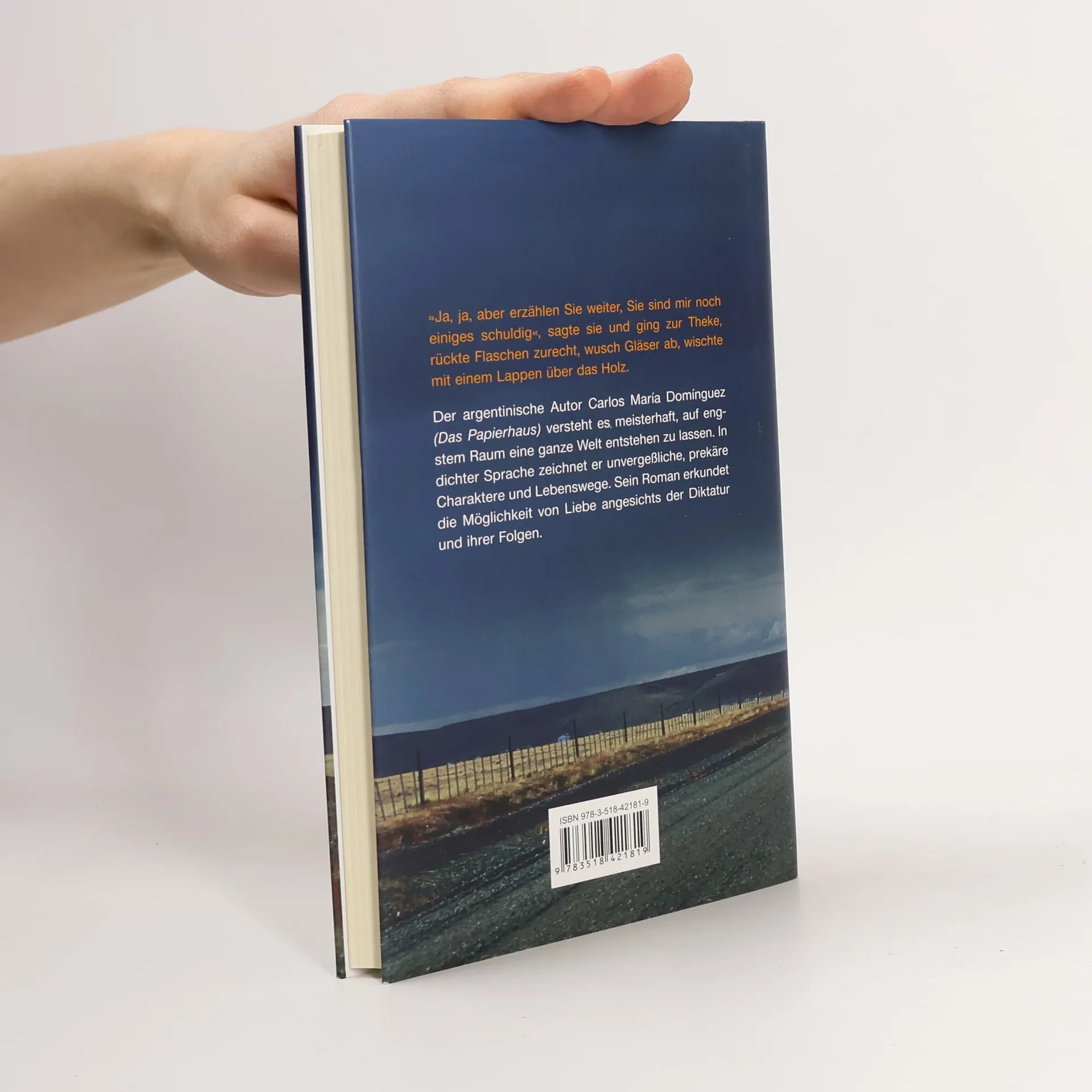 Auf einer winterlichen Landstraße am Rio de la Plata trifft der fünfzigjährige Arturo Balz die junge Tramperin Camboya. Widerwillig nimmt er das Mädchen mit, ohne zu ahnen, daß ihrer beider Geschichte zusammenhängt. Beide fliehen sie vor einem Gestern, das sich ihnen erst erschließt, als sie in einer einsamen Strandhütte am Feuer zu erzählen beginnen, während draußen der Sturm heraufzieht. Arturo schleppt seine Vergangenheit mit sich, die Liebe zu Cecilia, die von Montevideo nach Buenos Aires floh, von einer Diktatur in die nächste, und eines Tages verschwand. Camboya läßt ihre ziellosen Liebschaften hinter sich und kämpft mit dem Märtyrerschatten ihrer Tante – eben jener Cecilia, nach deren spurlosem Verschwinden Arturo sich fast aufgegeben hatte. Im Gespräch tasten sie sich an das Unbegriffene ihres Lebens heran, dem sie an der einsamen Küste ungeschützt ausgesetzt sind. Der argentinische Autor Carlos María Domínguez zeichnet in einer dichten Sprache, die sich an den großen Prosaautoren der Moderne mißt, unvergeßliche, prekäre Charaktere und Lebenswege. Sein Roman erkundet die Möglichkeit von Liebe angesichts der Diktatur und ihrer Folgen.