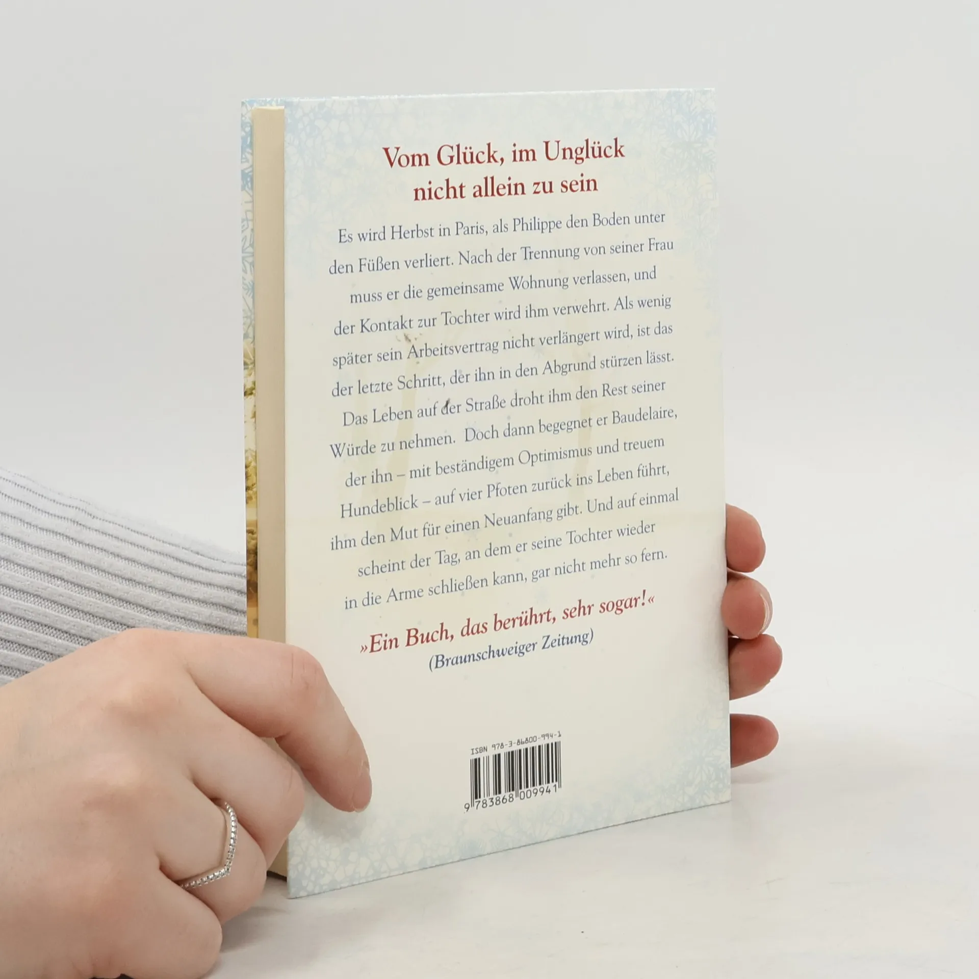 Vom Glück, im Unglück nicht allein zu sein Es wird Herbst in Paris, als Philippe den Boden unter den Füßen verliert. Nach der Trennung von seiner Frau muss er die gemeinsame Wohnung verlassen, und der Kontakt zur Tochter wird ihm verwehrt. Als wenig später sein Arbeitsvertrag nicht verlängert wird, ist das der letzte Schritt, der ihn in den Abgrund stürzen lässt. Das Leben auf der Straße droht ihm den Rest seiner Würde zu nehmen. Doch dann begegnet er Baudelaire, der ihn - mit beständigem Optimismus und treuem Hundeblick - auf vier Pfoten zurück ins Leben führt, ihm den Mut für einen Neuanfang gibt. Und auf einmal scheint der Tag, an dem er seine Tochter wieder in die Arme schließen kann, gar nicht mehr so fern.