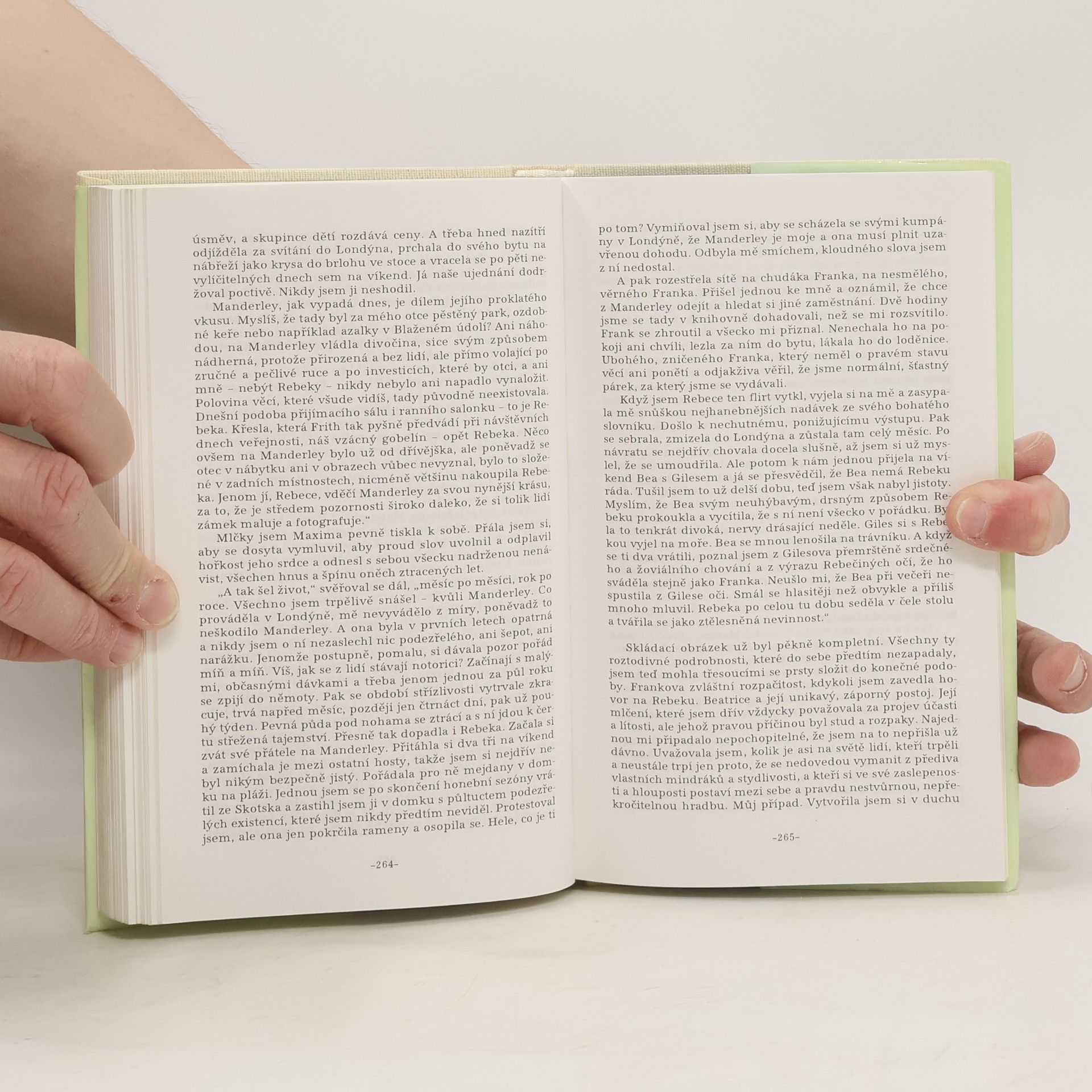 Jen docela málo knih se zapsalo do paměti čtenářů tak hluboce, jako tento vrcholný román slavné autorky: vypráví zvláštní, uchvacující příběh mladé ženy, která se po náhlém a prudkém vzplanutí provdá za známého bohatého muže. Spolu žijí na zámku Manderley, na jejich vztah však ustavičně padá stín de Winterovy první manželky, oslnivé a krásné Rebeky, která zahynula za zvláštních okolností. Hrdinka - dívka zdánlivě tak obyčejná a nenápadná, že ani nepoznáme její jméno, vyzrává v nerovném zápase s mrtvou sokyní. Děj plný napětí nabývá dramatického spádu. Vítězí láska a dobro, a to je velký dar této pozoruhodné okouzlující knížky.