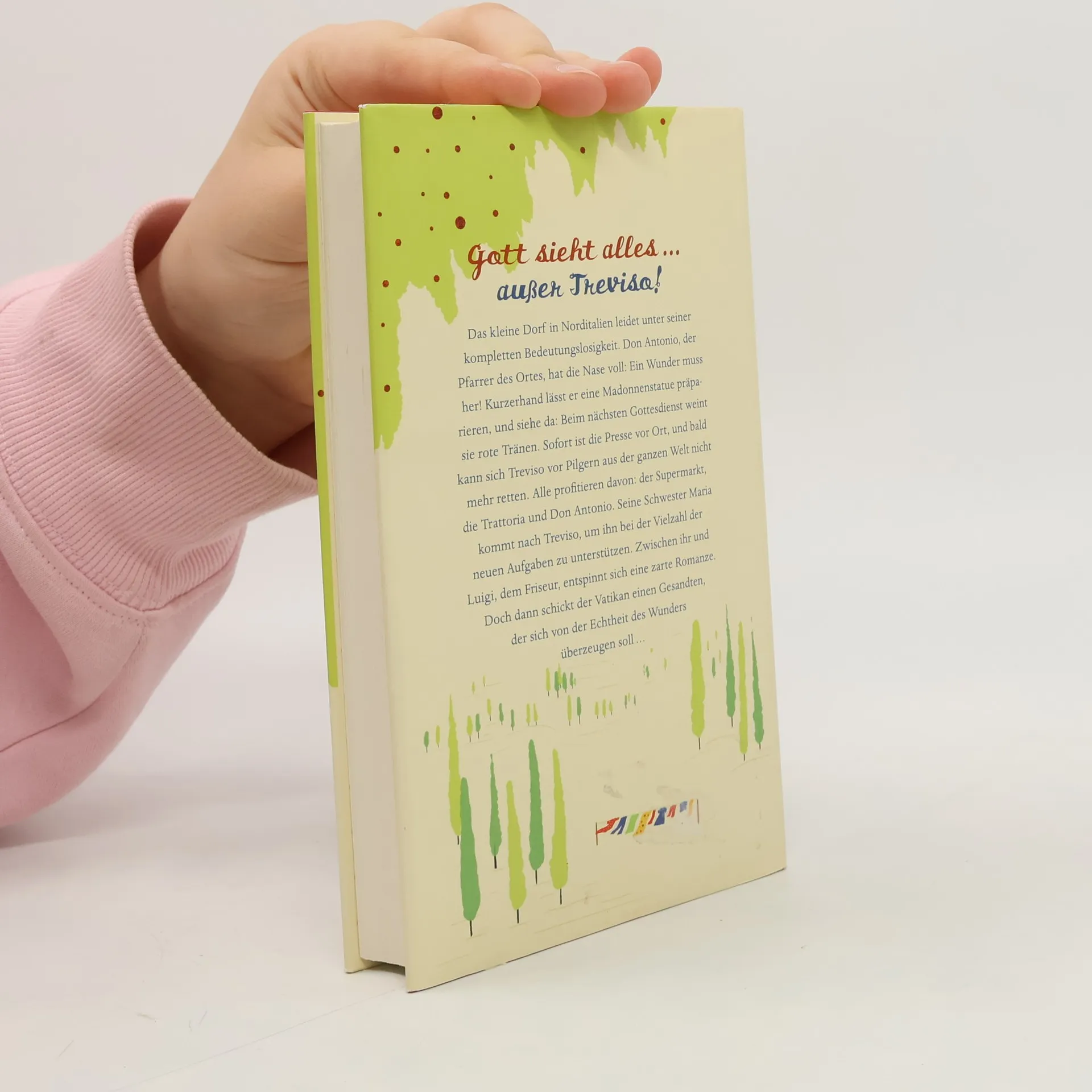 Gott sieht alles ... außer Treviso! Das kleine Dorf in Norditalien leidet unter seiner kompletten Bedeutungslosigkeit. Don Antonio, der Pfarrer des Ortes, hat die Nase voll: Ein Wunder muss her! Kurzerhand lässt er eine Madonnenstatue präparieren, und siehe da: Beim nächsten Gottesdienst weint sie rote Tränen. Sofort ist die Presse vor Ort, und bald kann sich Treviso vor Pilgern aus der ganzen Welt nicht mehr retten. Alle profitieren davon: der Supermarkt, die Trattoria und Don Antonio. Seine Schwester Maria kommt nach Treviso, um ihn bei der Vielzahl der neuen Aufgaben zu unterstützen. Zwischen ihr und Luigi, dem Friseur, entspinnt sich eine zarte Romanze. Doch dann schickt der Vatikan einen Gesandten, der sich von der Echtheit des Wunders überzeugen soll …