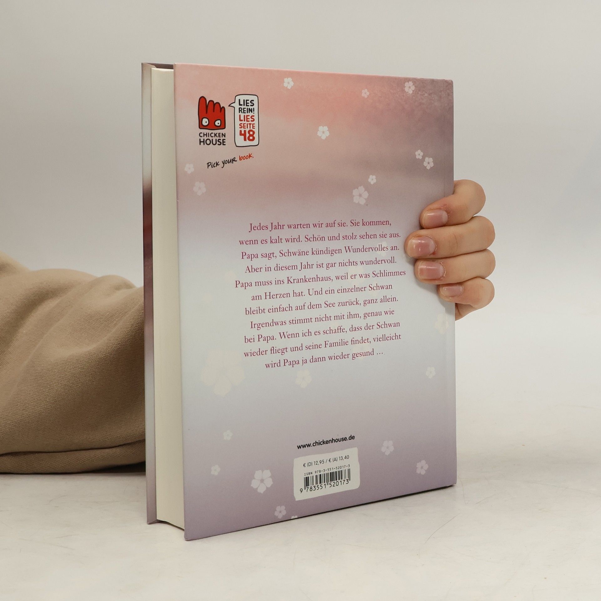 Jedes Jahr warten wir auf sie. Sie kommen, wenn es kalt wird. Papa sagt, sie kündigen Wundervolles an. Wir stehen ganz früh auf und beobachten, wie sie über dem See kreisen, im Wasser landen und dann weiterziehen. Sie sind so schön und stolz - und auch ein bisschen unheimlich. Aber in diesem Jahr ist gar nichts wundervoll. Papa muss ins Krankenhaus, weil er was Schlimmes am Herzen hat. Und ein einzelner Schwan bleibt einfach auf dem See zurück, ganz allein. Irgendwas stimmt nicht mit ihm, so wie bei Papa. Wenn ich es schaffe, dass der Schwan wieder fliegt und seine Familie findet, vielleicht wird Papa dann ja wieder gesund ...